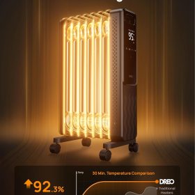 - 360° Whole-Home Warmth: Dreo radiator heater delivers swift and silent heating at 1500W, boosting efficiency by 92.3%. Its 7 advanced fins outpace competitors by 39.49% in heat dispersion. Stay cozy with rapid, quiet, and even warmth.