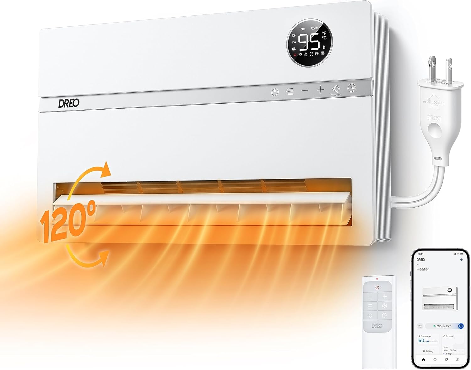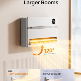- Widespread Warmth: Dreo’s 120° wide oscillation heating distributes warm air evenly from top to bottom, helping to bring fast heat to every corner of your room more efficiently than regular wall-mounted heaters.
