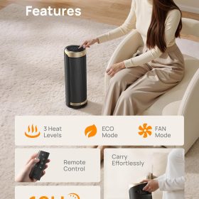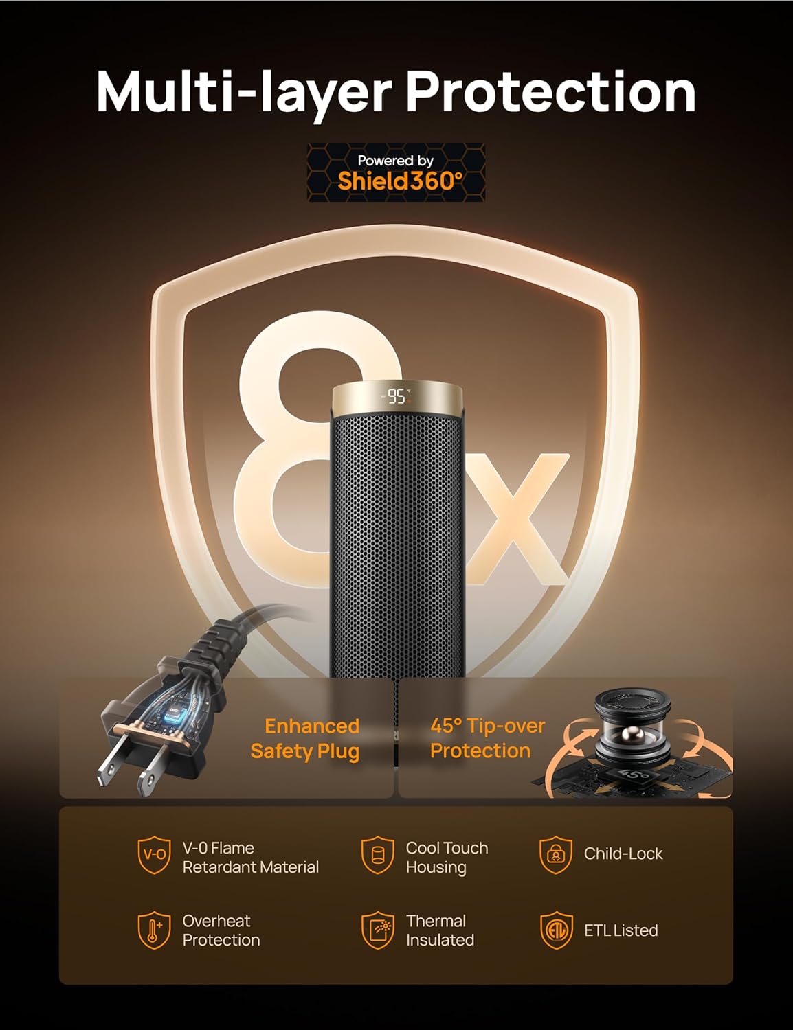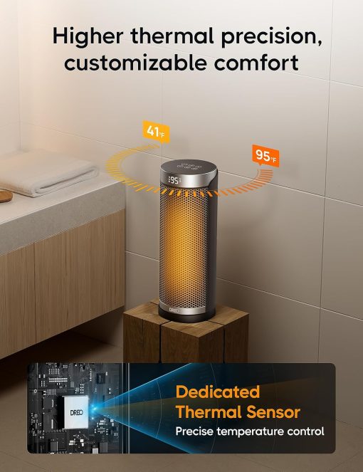 Dreo Space Heater, 1500W Electric Heaters for Indoor Use with Thermostat, 70° Oscillation, 8 Safety Protections, 5 Modes, Remote, 12H Timer, Quiet Portable Heater for Office, Bedroom, Large Room
