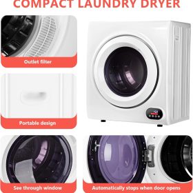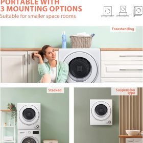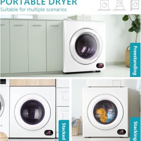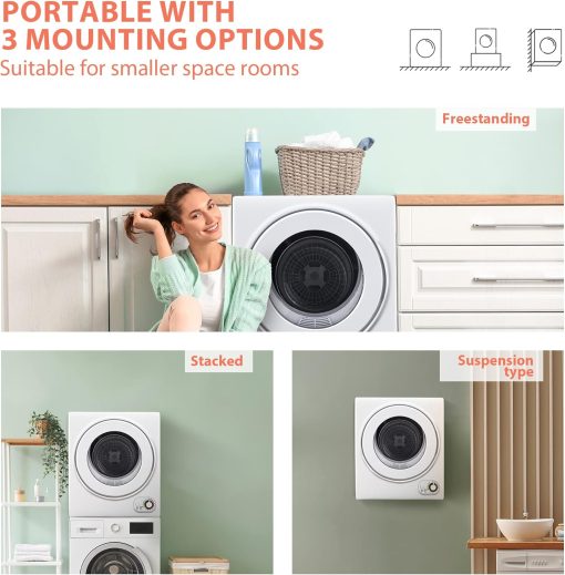- 【Portable and safe�?With its compact size and handle, this portable dryer is ideal for small spaces such as apartments, dormitories, etc. It can be installed on a countertop, on a firm, level ground or mounted with a bracket (bracket not included). ETL and DOE certifications guarantee the safety and quality of our products.