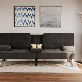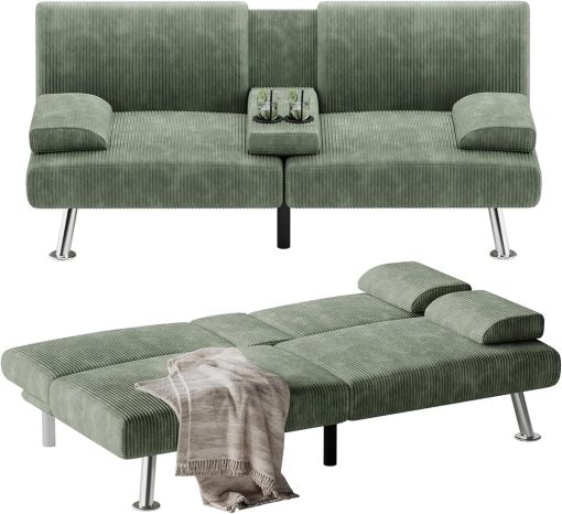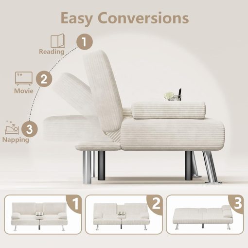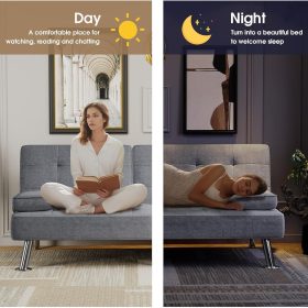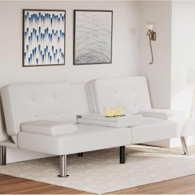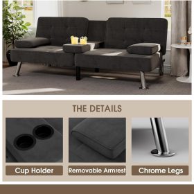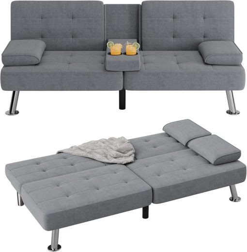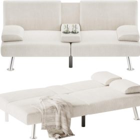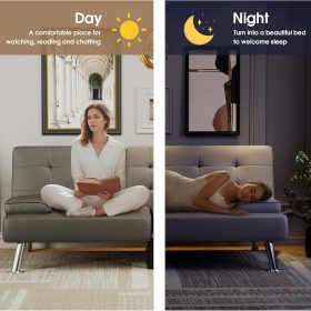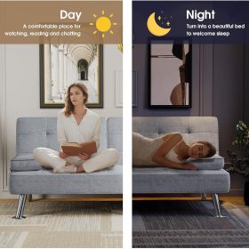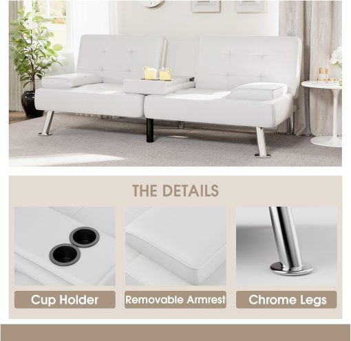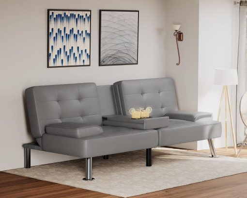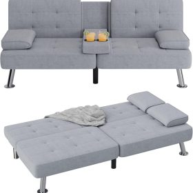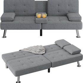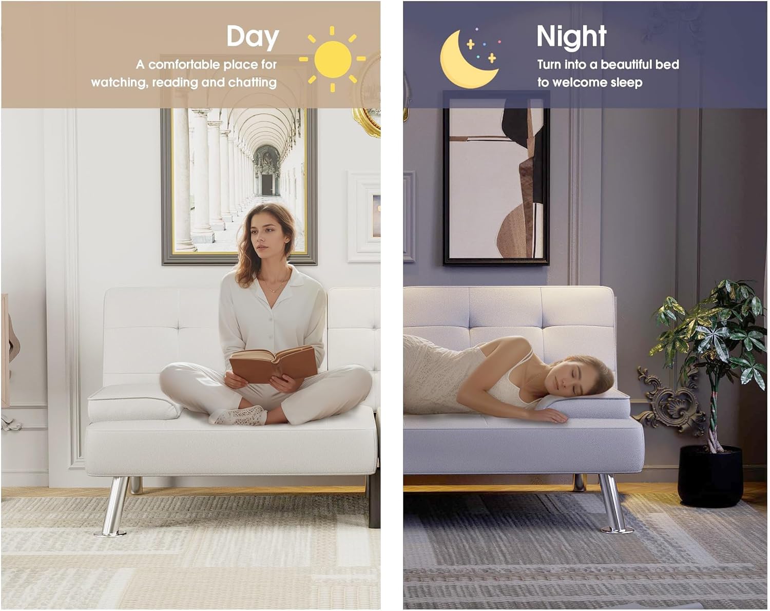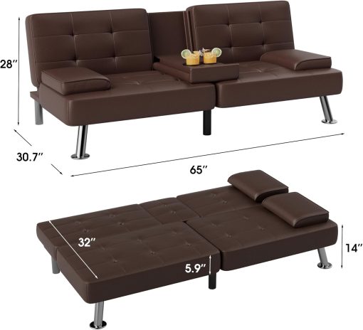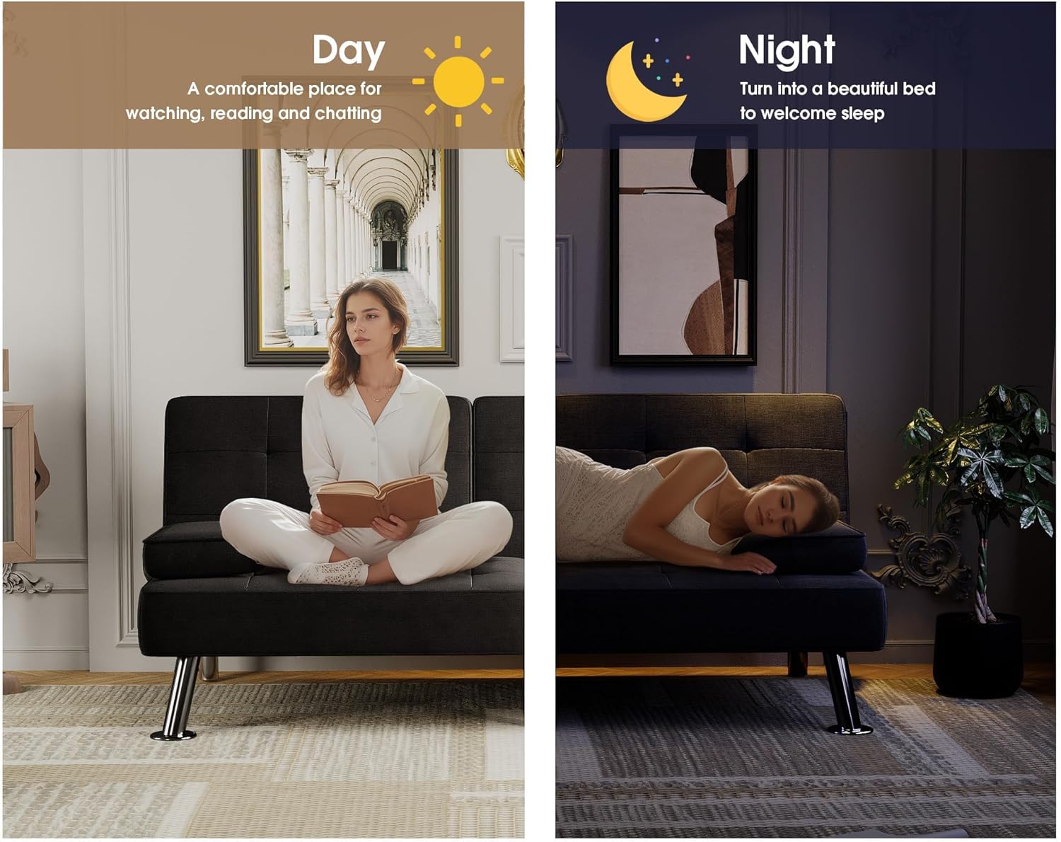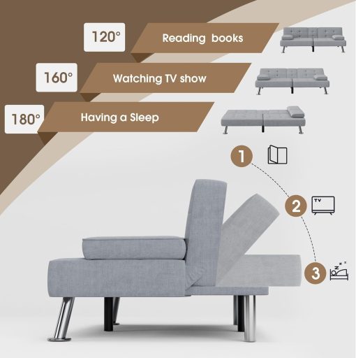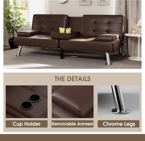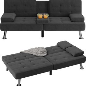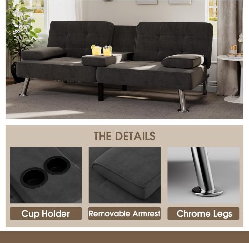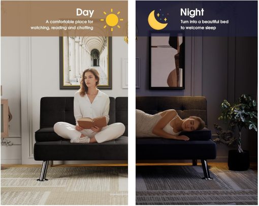 - Cozy Time: The futon couch is filled with high-resilient sponges, soft and supportive, covered by selected material, delivering relax and comfort experience just right. The 2 removable cup holders bring much convenient to get a drink when sitting in the sofa