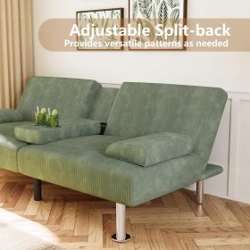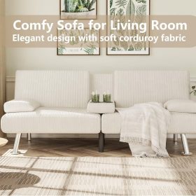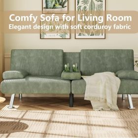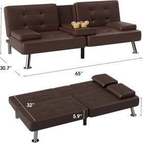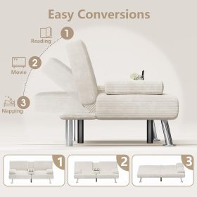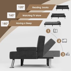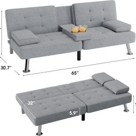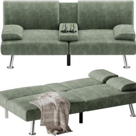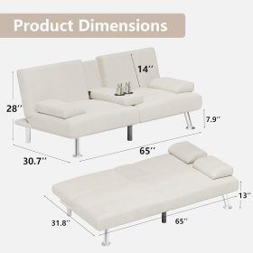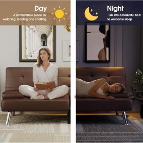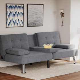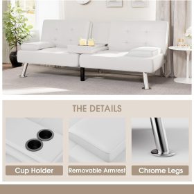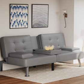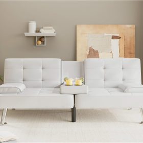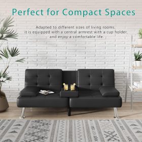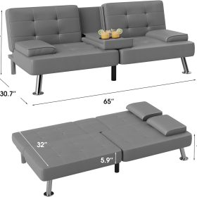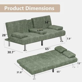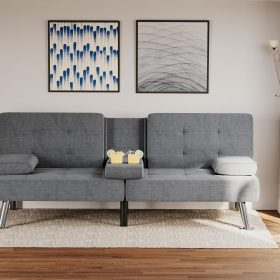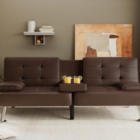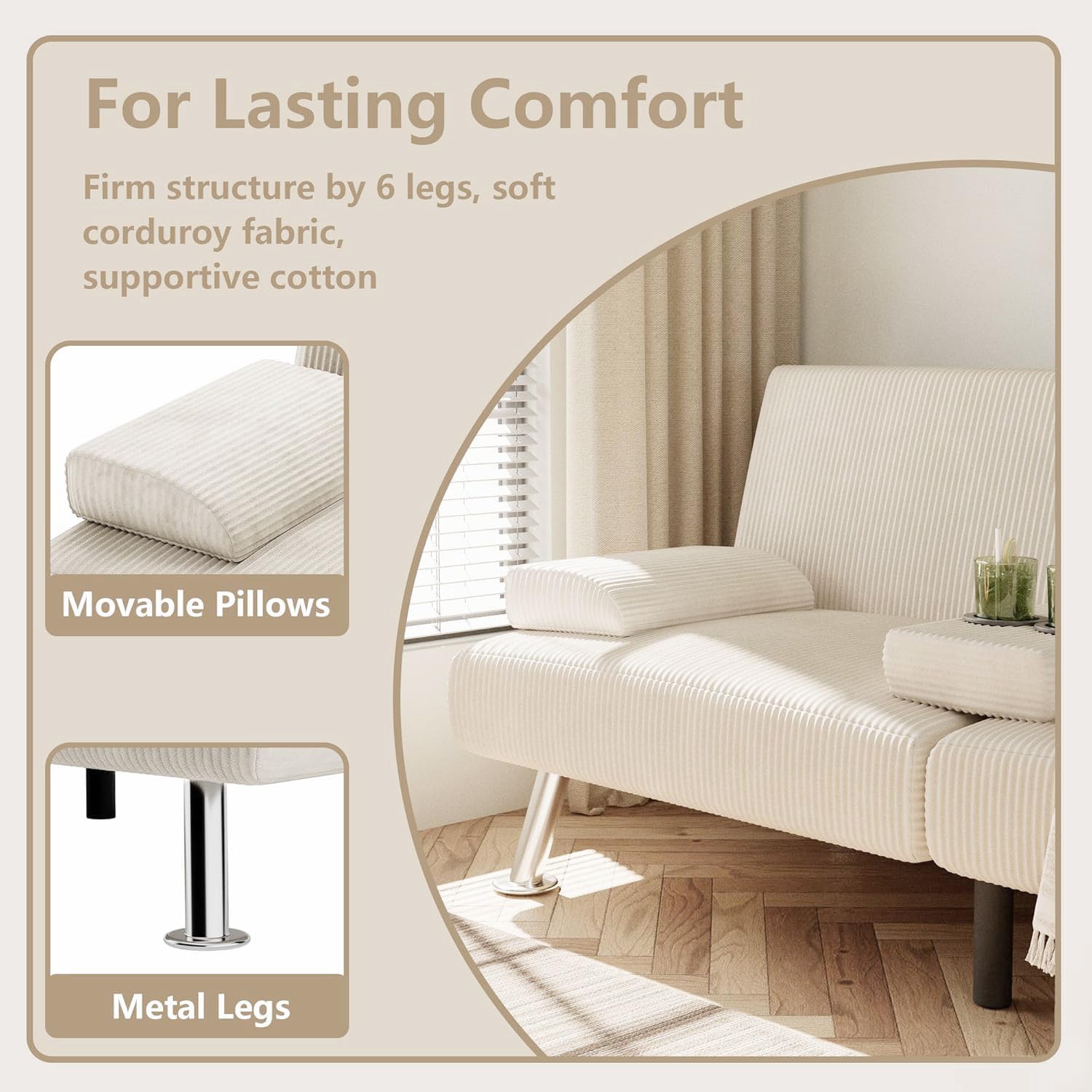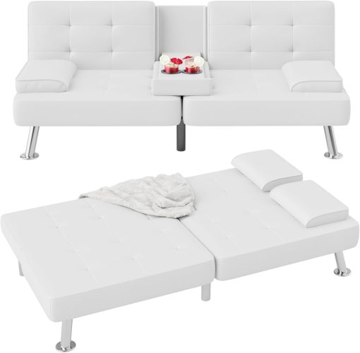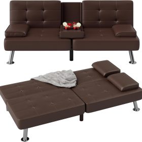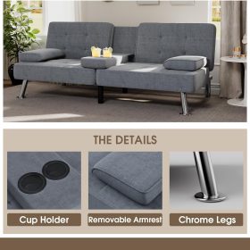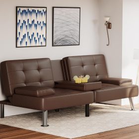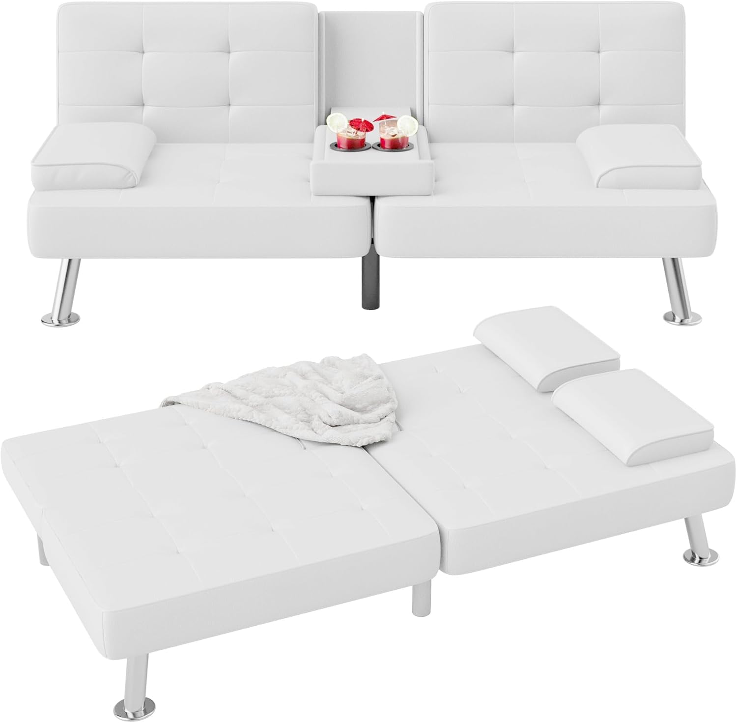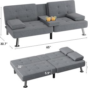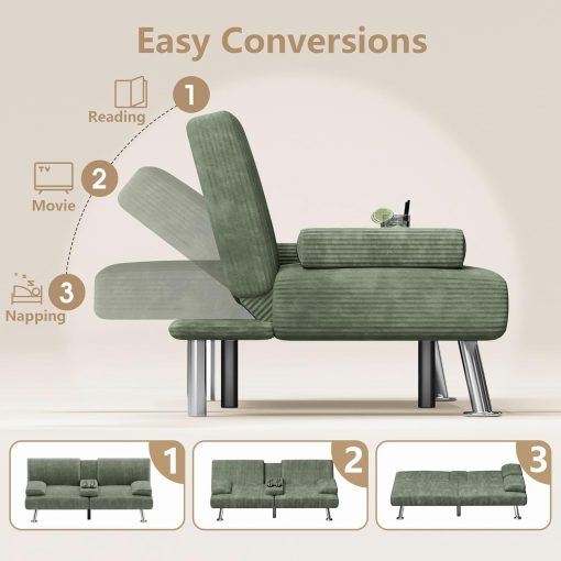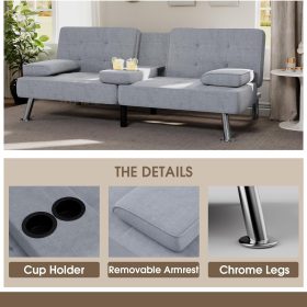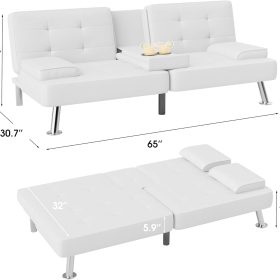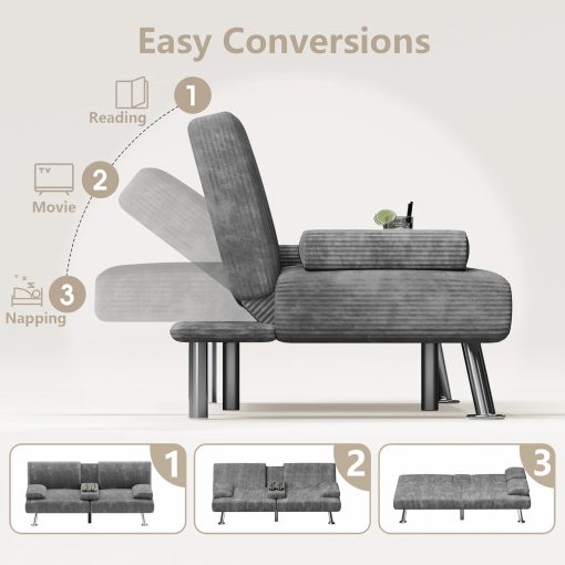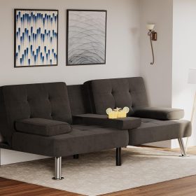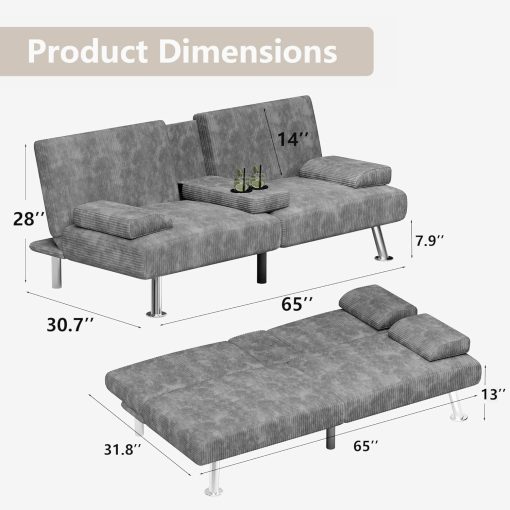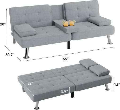 - Cozy Time: The futon couch is filled with high-resilient sponges, soft and supportive, covered by selected material, delivering relax and comfort experience just right. The 2 removable cup holders bring much convenient to get a drink when sitting in the sofa