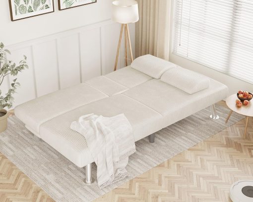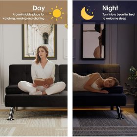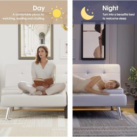 - Selected Material: Our sleeper futon sofa is made of good quality fabric, which is soft, smooth, and easy to maintain. The metal legs provide much stability with up to 500 lbs weight