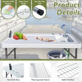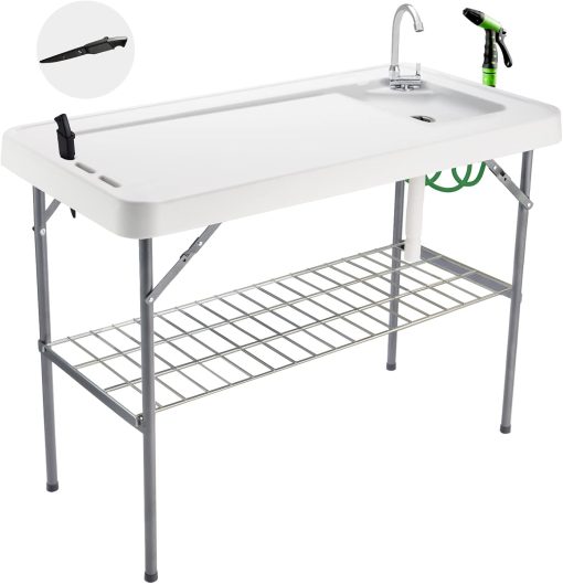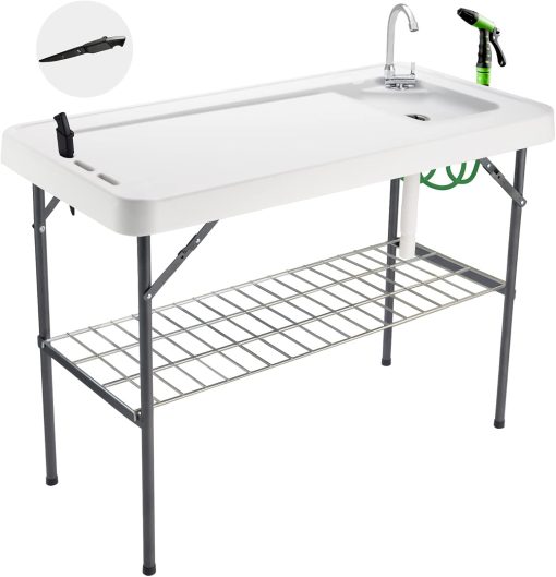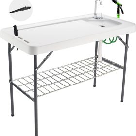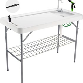 Our fish cleaning table has the large surface area (45’L x 23’W), perfect for processing big fish, washing a variety of vegetables and fruits and cutting meat at the same time. In addition, it is very lightweight, net weight only 22 pounds, suitable for carrying.