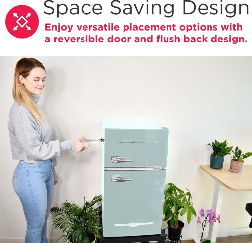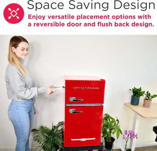 - USER-FRIENDLY DESIGN: The compact fridge is constructed with two pull handles for easy opening and closing, along with a reversible door and flush back design for added flexibility to suit your space.