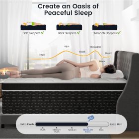 - 4 Major Peaceful Sleep Point:Gel Memory Foam: long sleep without heat, Independent Pocket Springs: No noise in sleeping, Motion Isolation:Reducing motion disturbances in companion’s sleep, Breathable and Cooling Fabric: Skin-friendly and breathable, cooling and wicking