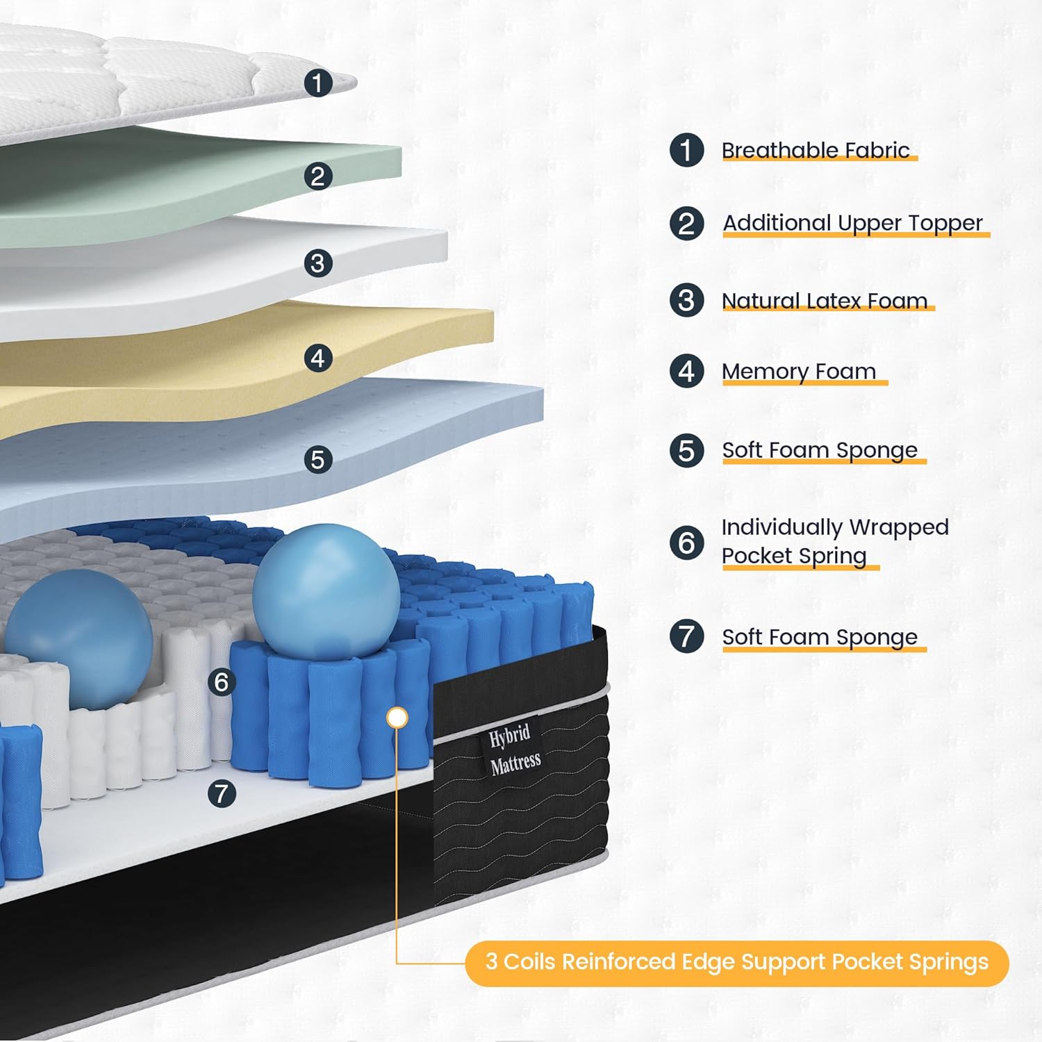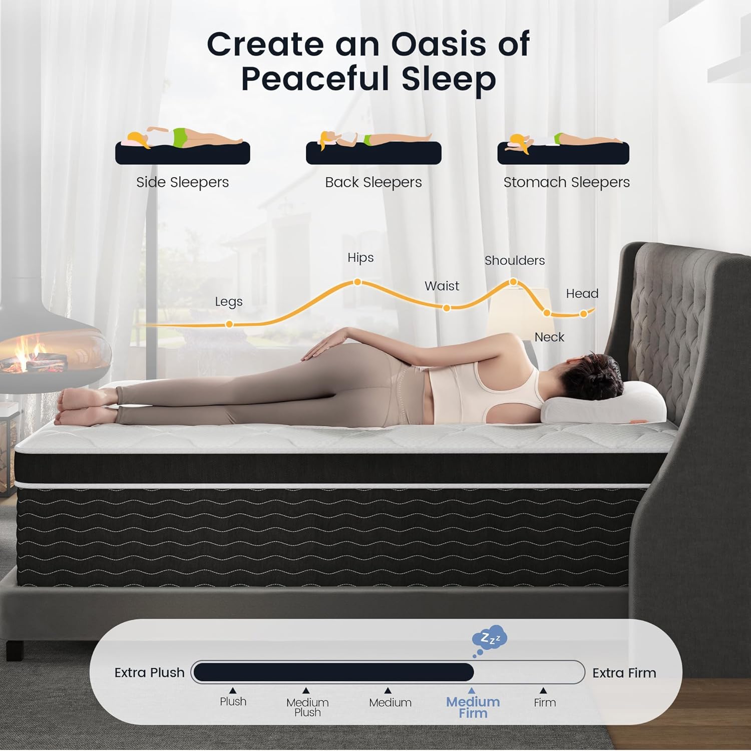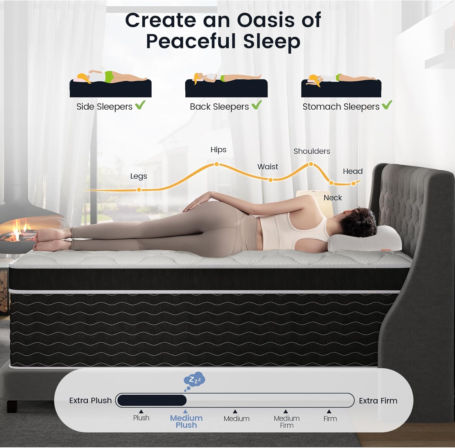 - Medium Plush Full Bed Size Mattress: Hybrid Mattress is made of independent pocket springs and high-density memory foam that meets the needs of people in various sleeping positions,. It provides corresponding support according to the gravity of body parts in different sleeping positions, and adjusts to your sleep movements at any time