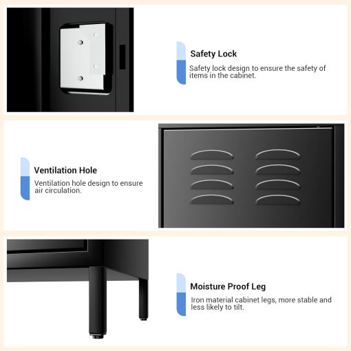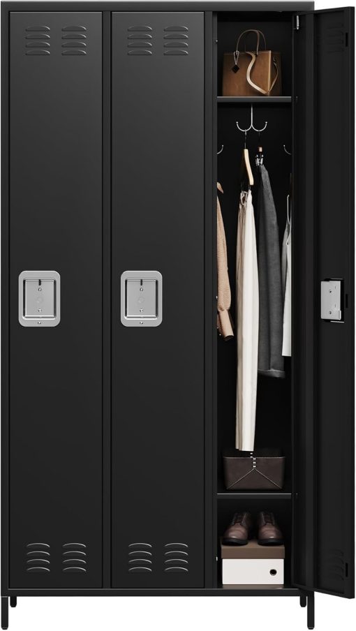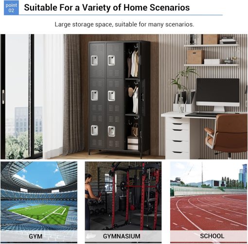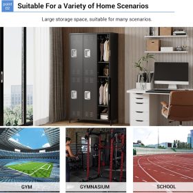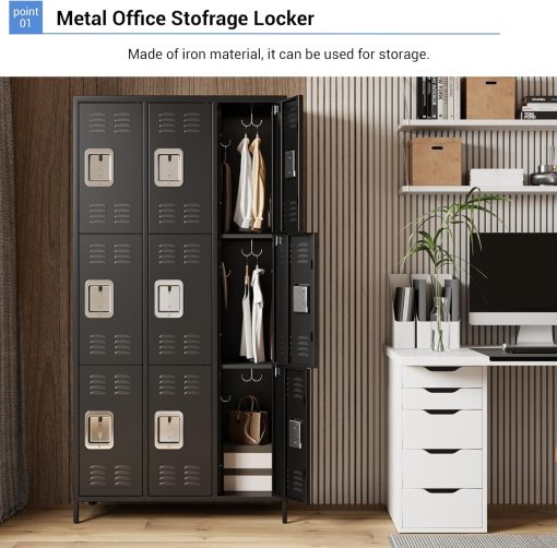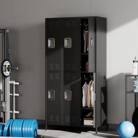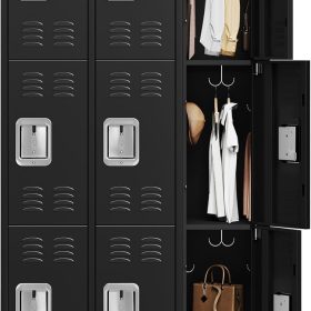GAOMON Locker for Employees, 6 Doors Locker Cabinet with Hooks, Storage Locker for Home, Office, Gym, School, Assembly Required, Black