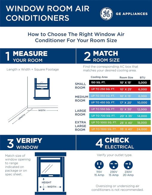 GE Window Air Conditioner Unit, 6,000 BTU for Small Rooms up to 250 sq ft. with Adjustable Fan and Cooling Settings, Perfect for Small Bedroom or Living Room, Easy Install Kit Included, White