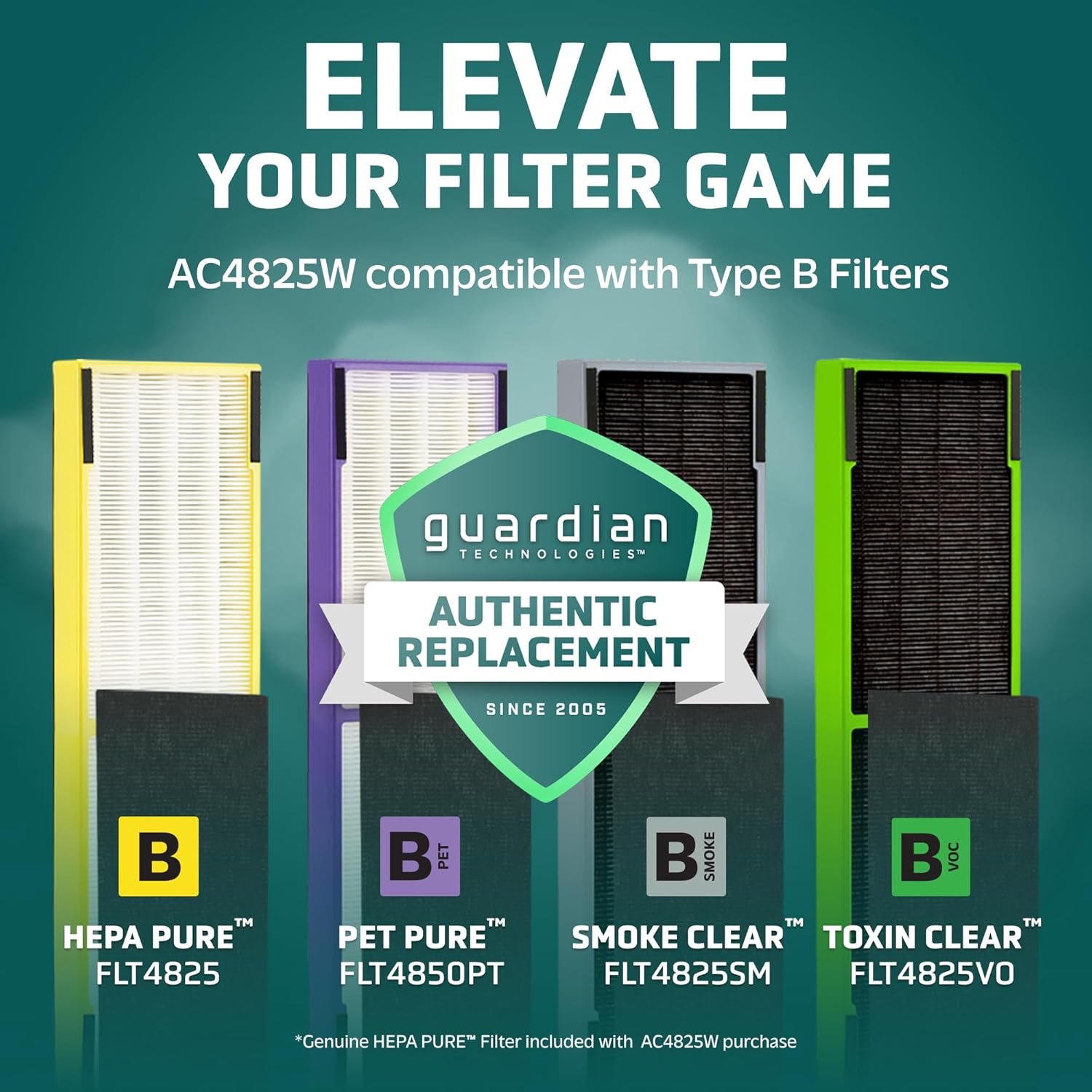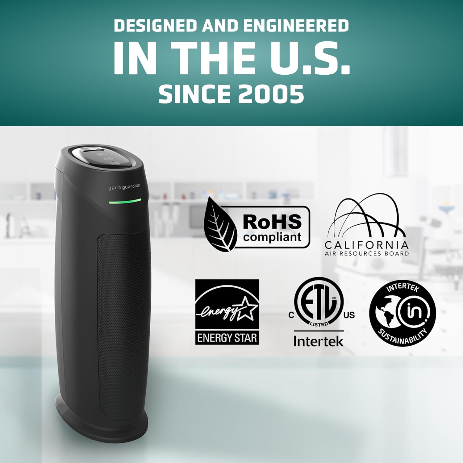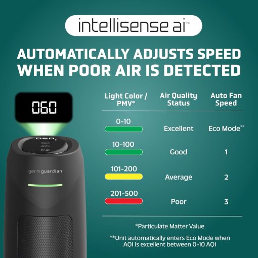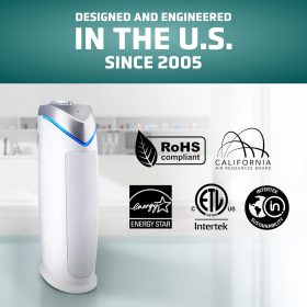 GermGuardian Air Purifier for Home with HEPA Pure Filter, for Wildfire Smoke, Pet Dander, Pollen, Odors, Large Rooms Up To 743 Sq. Ft., Removes 99.97% Pollutants, UV-C Light, 22″, AC4825E, Gray