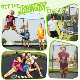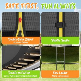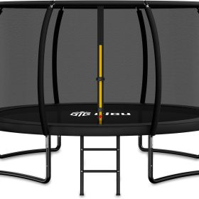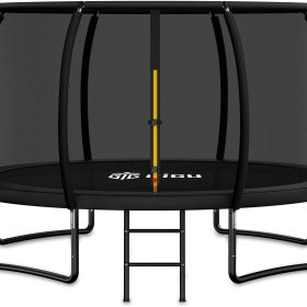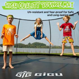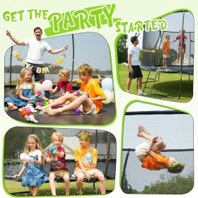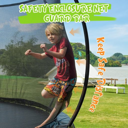 - 【High-Performance Jumping Mat】This outdoor yard trampoline is equipped with a premium jumping mat that’s UV-resistant, waterproof, and fade-resistant for long-lasting performance. Reinforced with heavy-duty stitching, the mat offers superior durability and elasticity, providing a strong, stable bounce with every jump.