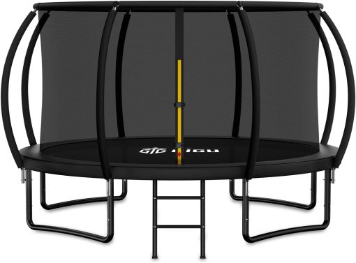 - 【Safe Curved Poles Design】Recreational Trampoline for kids and adults feature specially engineered curved safety poles wrapped in thick, high-density foam to create a safer jumping environment.The curved design increases the distance between the poles and the jumping area, effectively reducing the risk of accidental collisions. Making every jump safer and more secure.