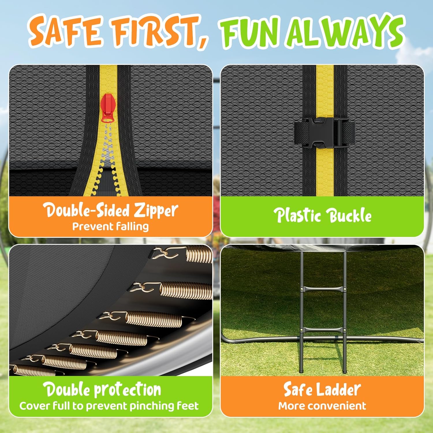 - 【Safety is Top Priority】All trampolines have successfully passed both CPSIA and ASTM F381-16 safety standards. The CPSIA test ensures that the trampoline materials are free from harmful heavy metals like lead and phthalates, making them safe for children. The ASTM F381-16 standard provides strict guidelines for structural integrity, component quality, assembly, labeling, and overall product safety—offering families peace of mind with every bounce.
