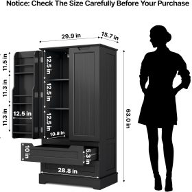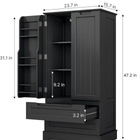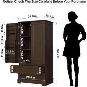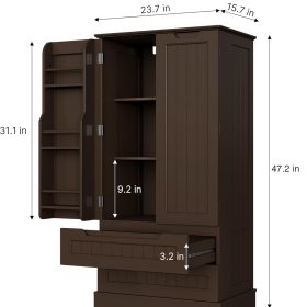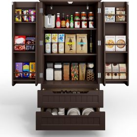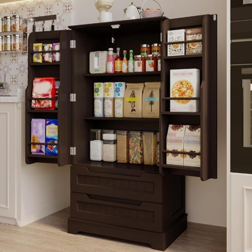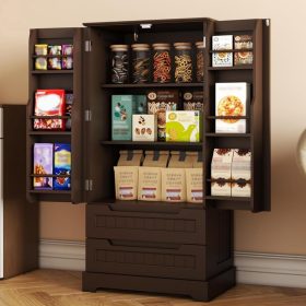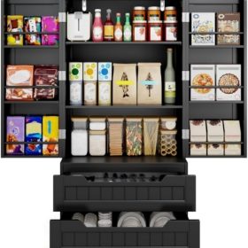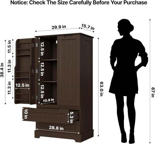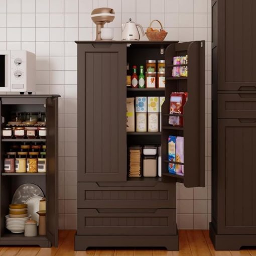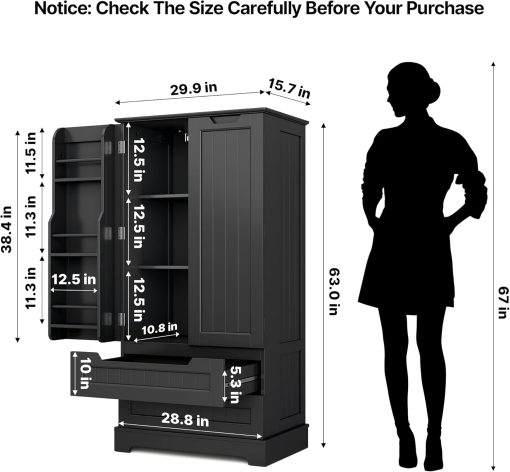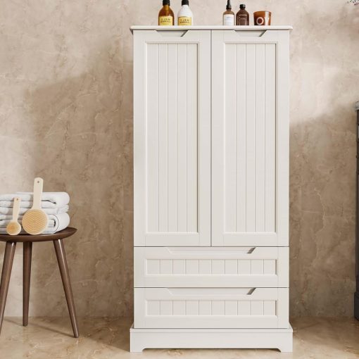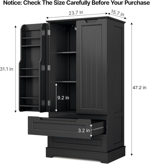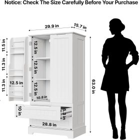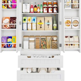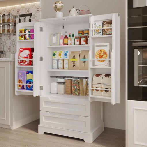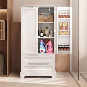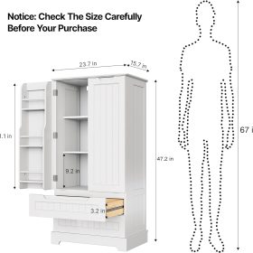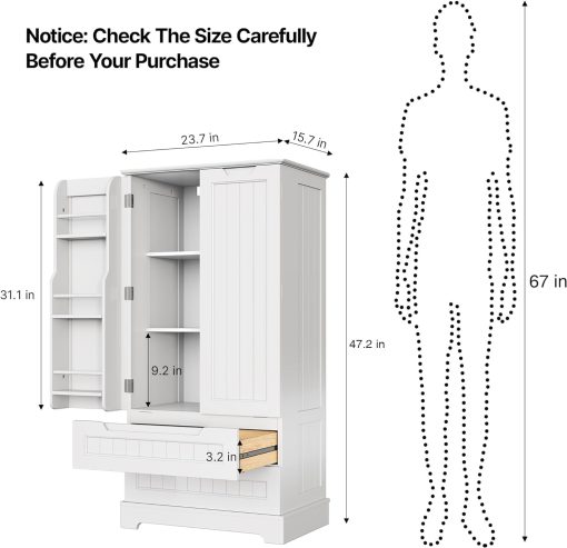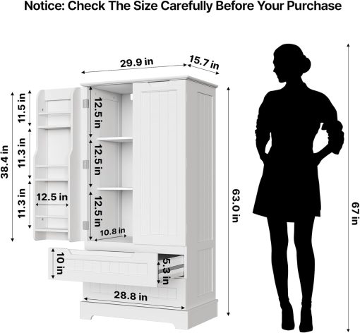 Gizoon Kitchen Pantry Storage Cabinet with Drawers Freestanding Bathroom Storage Cabinets with Doors and Shelves, 47″ Small Food Pantry Cabinet for Dining Room Craft Room, White
