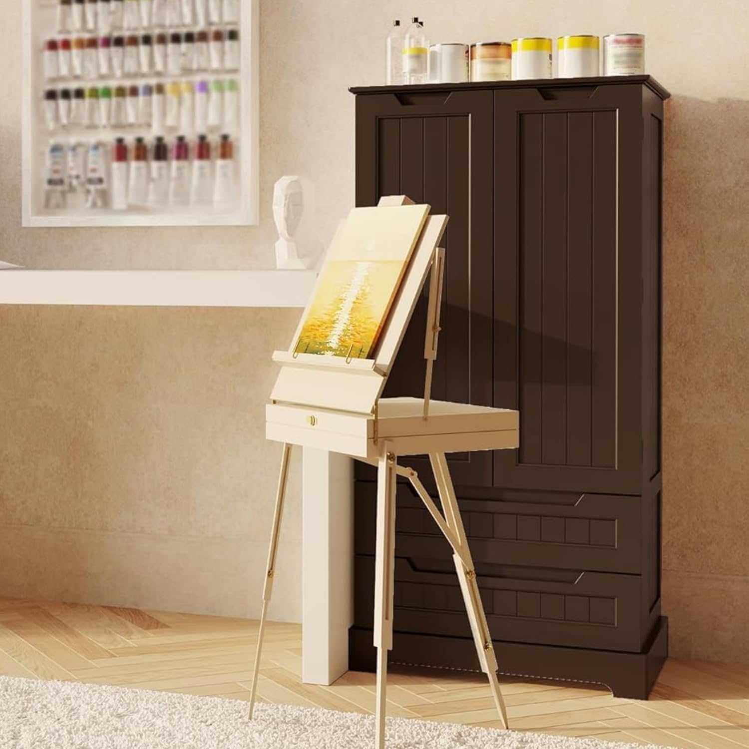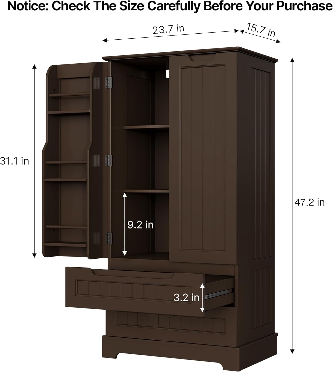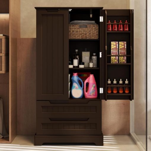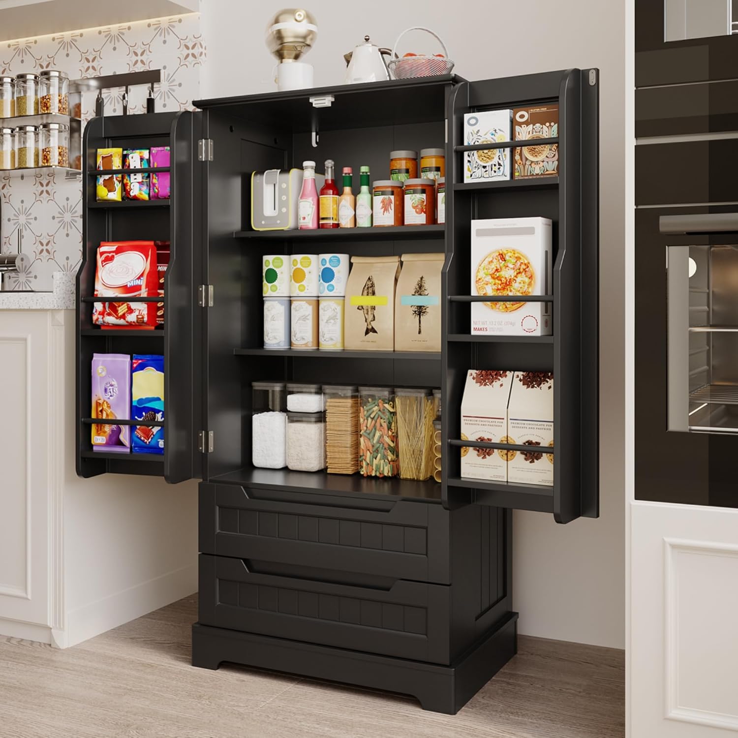 Gizoon Kitchen Pantry Storage Cabinet with Drawers Freestanding Bathroom Storage Cabinets with Doors and Shelves, 47″ Small Food Pantry Cabinet for Dining Room Craft Room, White
