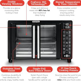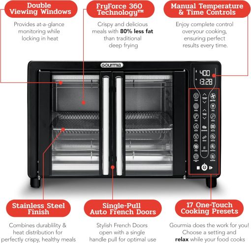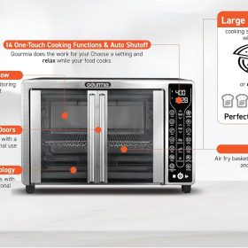 - 17-MODE, QUICK COOKING OVEN | Toast, Bake, Dehydrate, Air Fry, & More In A Fraction Of The Time With This Combo Marvel From Gourmia | Easy 1-Touch Control Panel With 17 Preset Options To Cook Your Favorite Breads, Meats, & Vegetables To Crispy Goodness