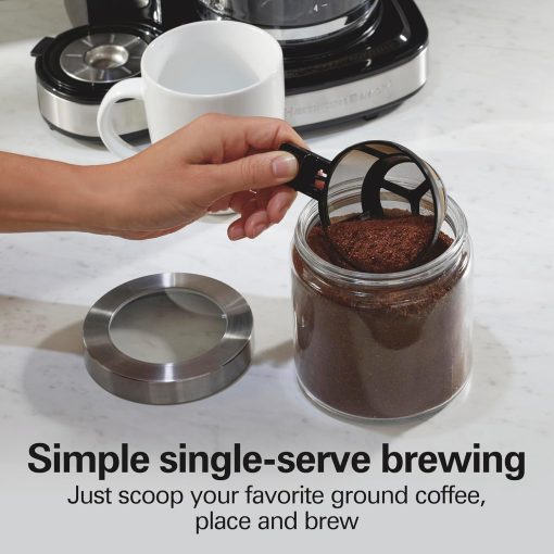 - SIMPLE SINGLE-SERVE BREWING: With the included mesh scoop, adding your favorite ground coffee to the coffee maker couldn’t be easier: just scoop, place and brew. (Not compatible with K-Cup* pods.)
