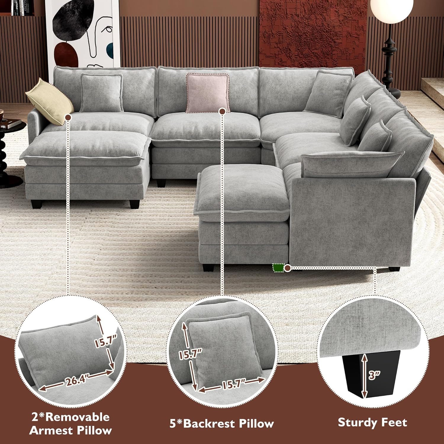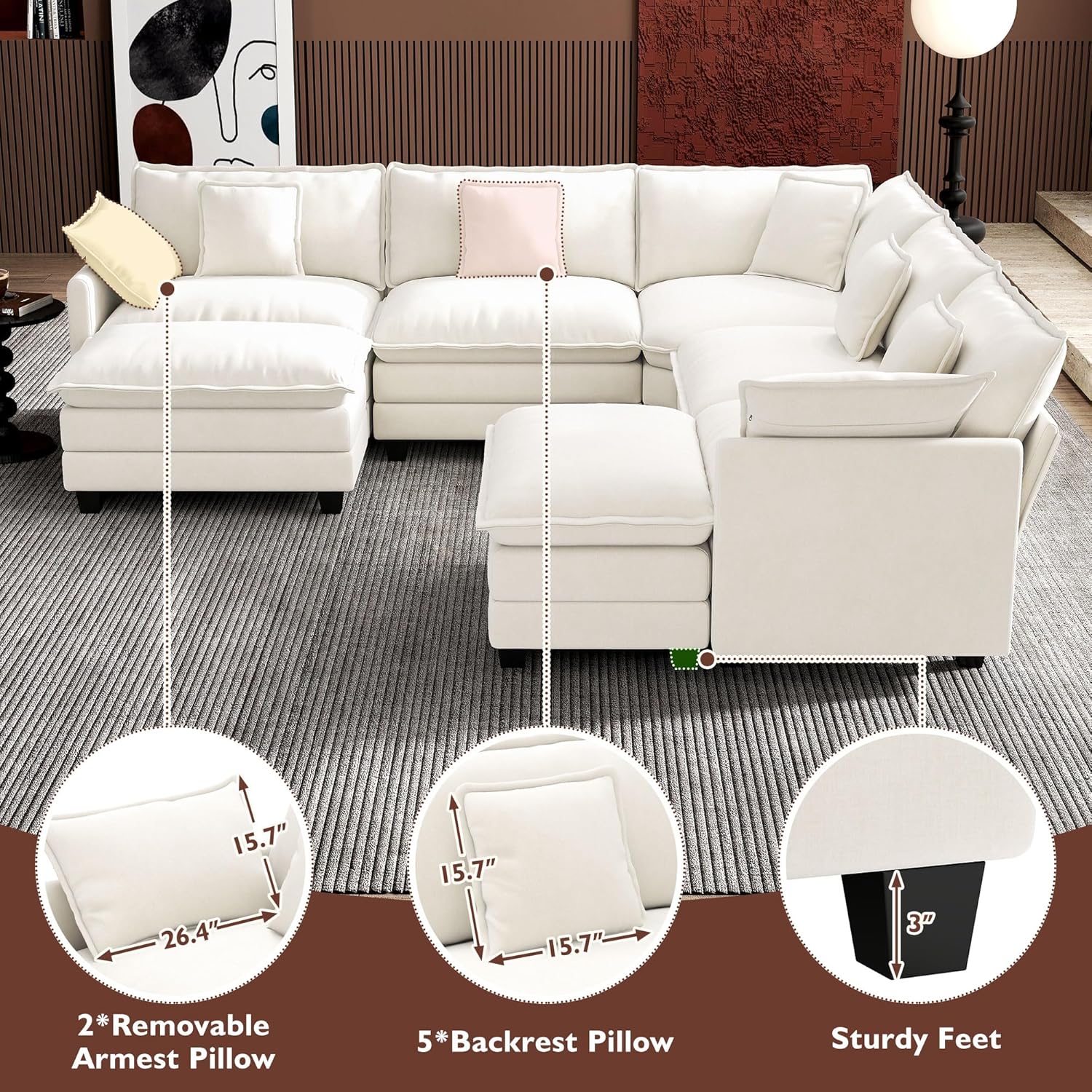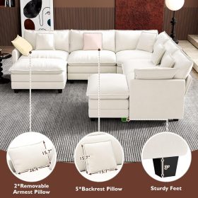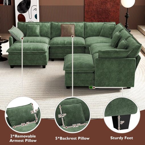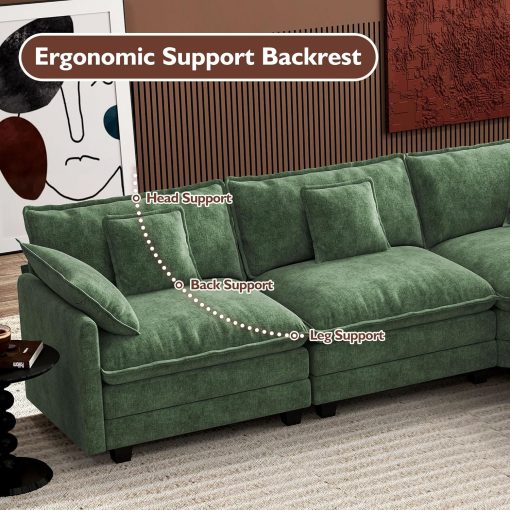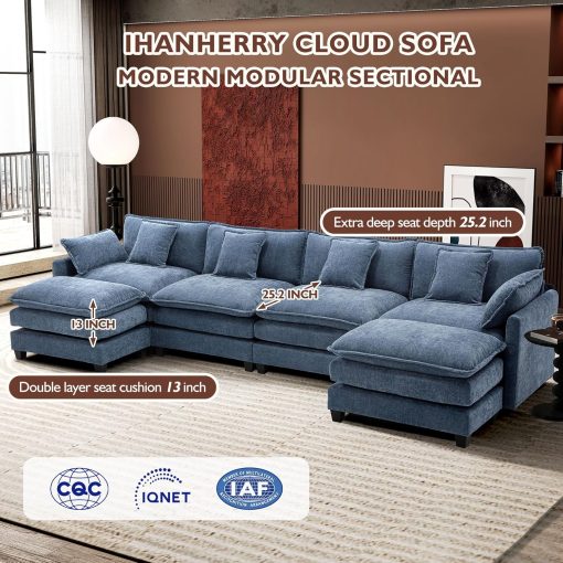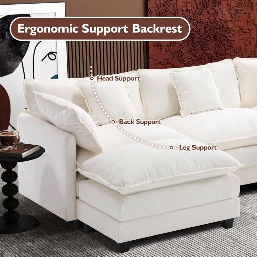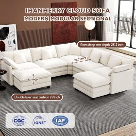 - 【Ergonomic Design】Ihanherry U-shaped couch is equipped with four backrest pillow, two removable armrest pillows and two ottomans, providing extra support for the back and waist. Each pillow feels like as soft as clouds. When you sit on the sofa, it can cling to your back and waist, giving you an extremely comfortable experience.