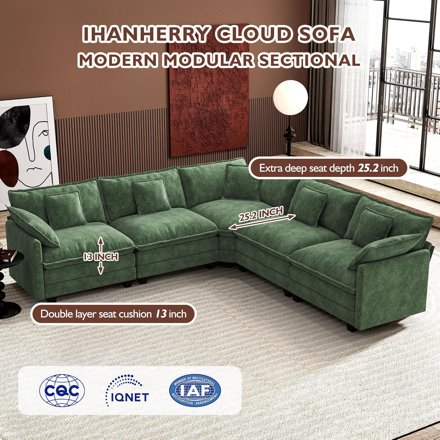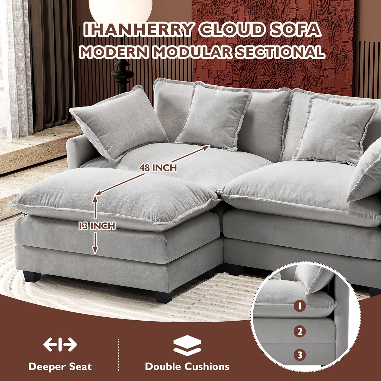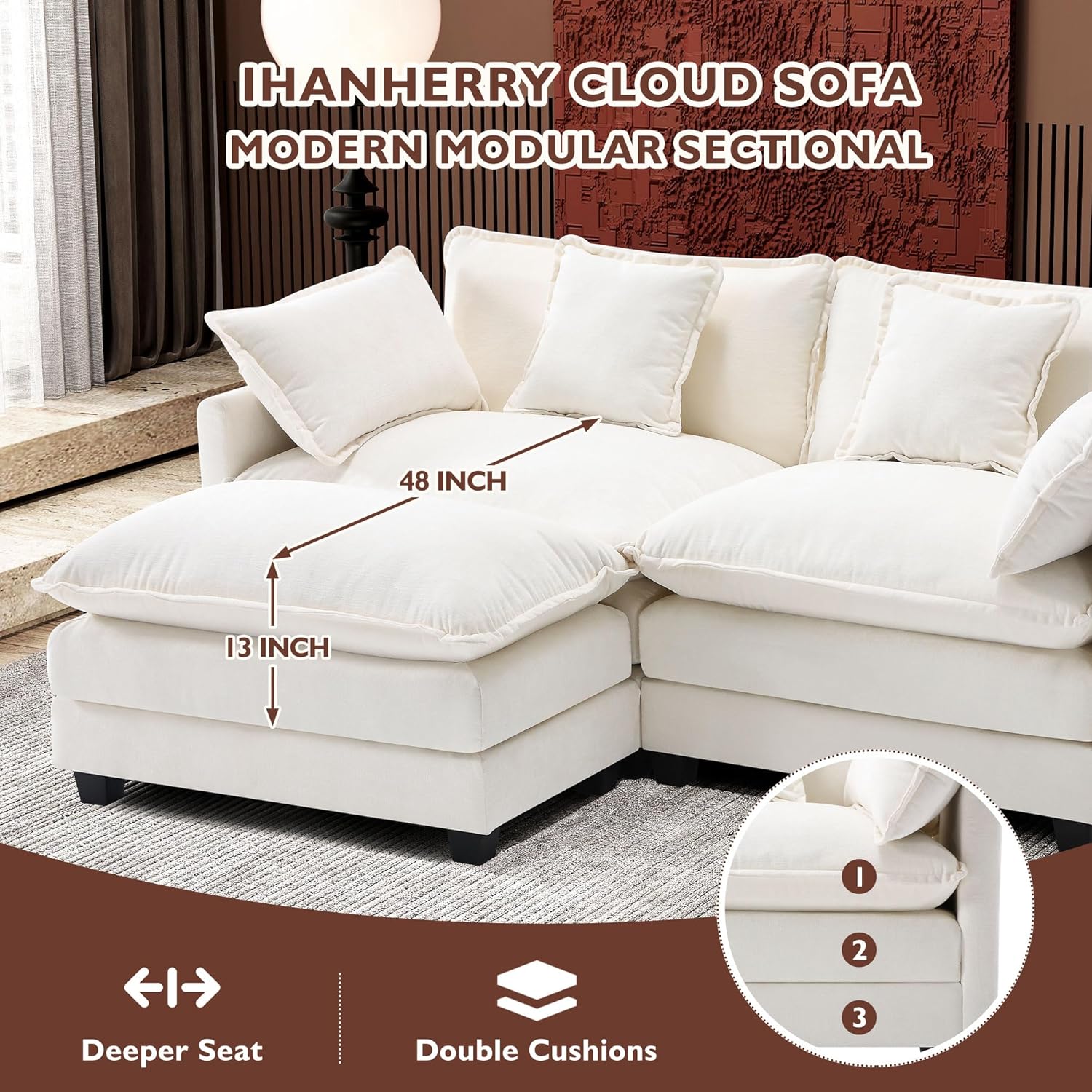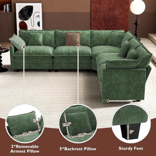 - 【Ergonomic Design】Ihanherry U-shaped couch is equipped with four backrest pillow, two removable armrest pillows and two ottomans, providing extra support for the back and waist. Each pillow feels like as soft as clouds. When you sit on the sofa, it can cling to your back and waist, giving you an extremely comfortable experience.