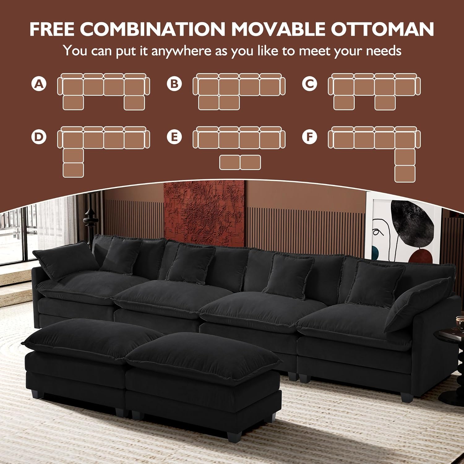 - 【Flexible Modular Sofa�? Each modular piece of the cloud couch can be moved easily, and it is convenient to allow you to arrange them into any desired shape based on your preferences and needs. Customize your own sofa to fit different spaces, offering flexibility and style for your home.