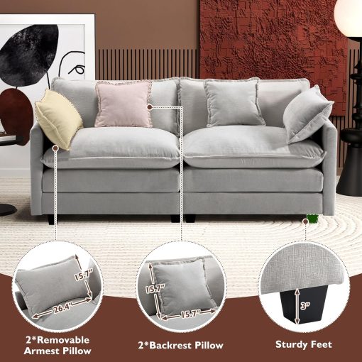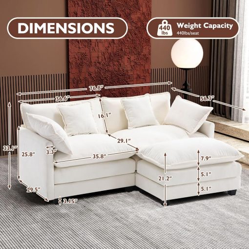 - 【Sturdy Couch】The frame of cloud sofa is made of high-quality solid wood, making it more durable and sturdy. Each sofa can withstand a maximum weight of 440 pounds, exceeding that of most sofas. With a seat depth of 25.2′, it is suitable for most body types and various sitting postures.