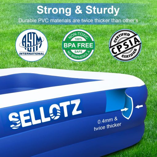 - 【Safe & Durable Retangular Inflatable Pool�? SELLOTZ swimming pool for kids is made with Phthalate and lead free, Using BPA-free materials that meets the standards of international children’s toys, which is twice thicker than most in the market, reducing the risk of punctures and ensuring a long service life.