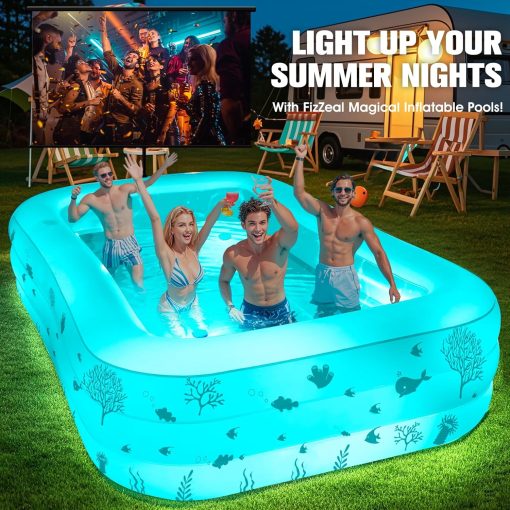 Inflatable Pool with Seat and Pool Lights, Durable Thickened Large Size Family Inflatable Pools for Adults Blow Up Pools,105″ x 65″ x 25″Swimming Inflatable Kids PooI for Backyard,Outdoor (White)