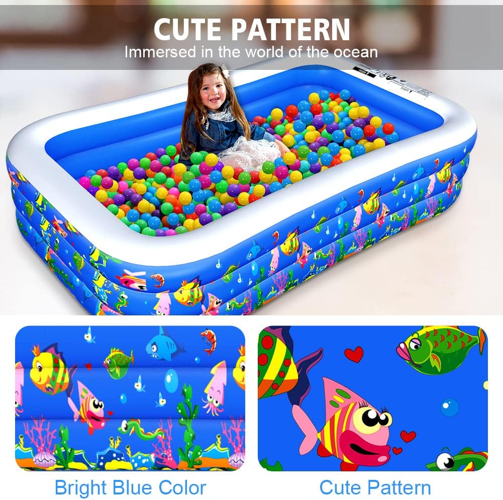 Inflatable Swimming Pool, 120″ x 72″ x 22″ Kiddie Pools, Family Lounge Pools Thickened Above Ground Family Pool for Summer Water Party, Backyard, Garden Lawn, Blue