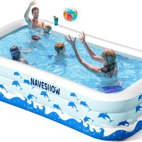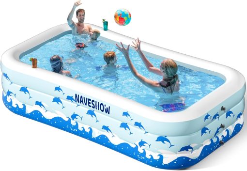 - 🐬【Family-size Inflatable Pool】Pool inflatable size: 130′ X 72′ X 22′. Immerse your whole family in aquatic joy with a spacious design accommodating up to 4 adults and 3 k ids, creating unforgettable moments for everyone.