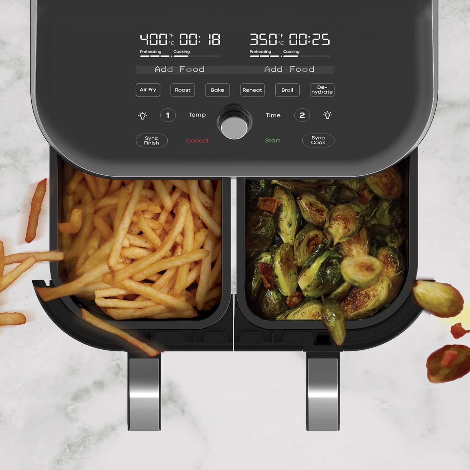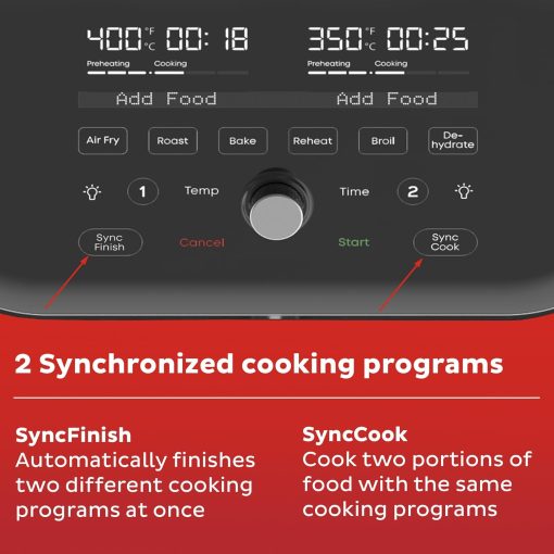 - 6 Cooking Functions: Air fry, roast, broil, bake, reheat, and dehydrate all in one sleek appliance with intuitive touchscreen controls