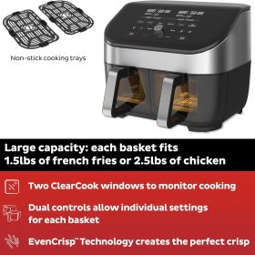 - Quick Cleanup: No more fighting about who has to do the dishes. The dishwasher-safe cooking baskets and trays make clean-up a breeze.