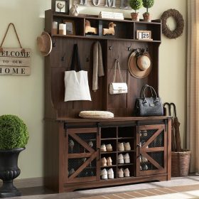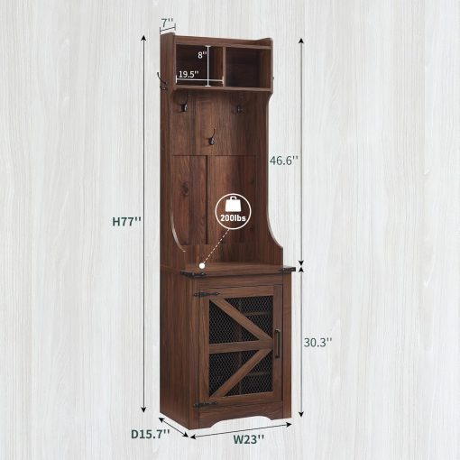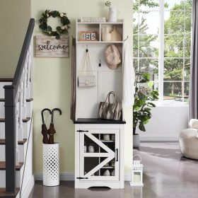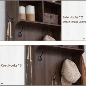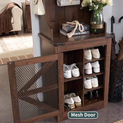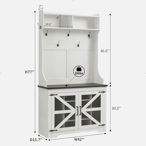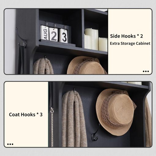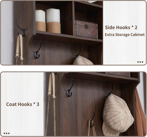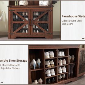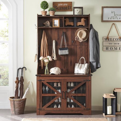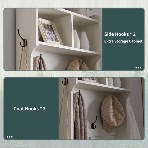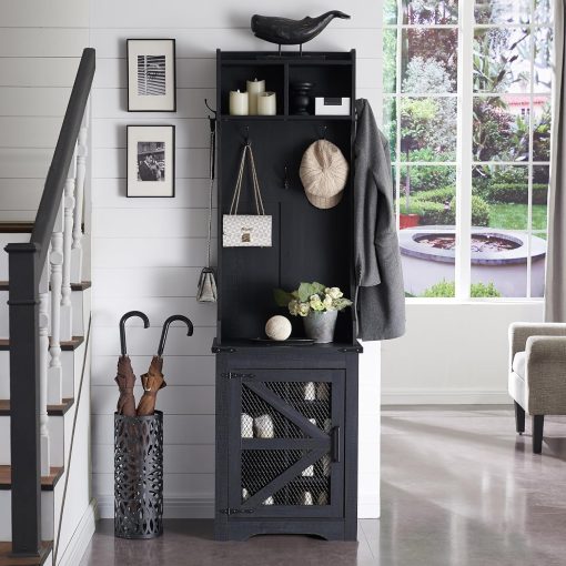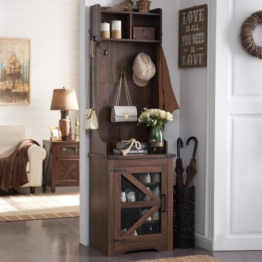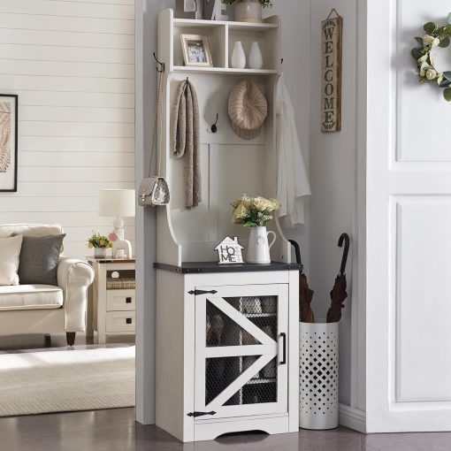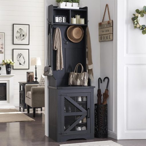 - Versatile 3-in-1 Hall Tree: This farmhouse entryway storage solution combines a coat rack, shoe storage cabinet, and storage cubby, offering a complete organization system for your entryway or hallway. With this all-in-one furniture piece, you can meet a variety of storage needs in one compact design.