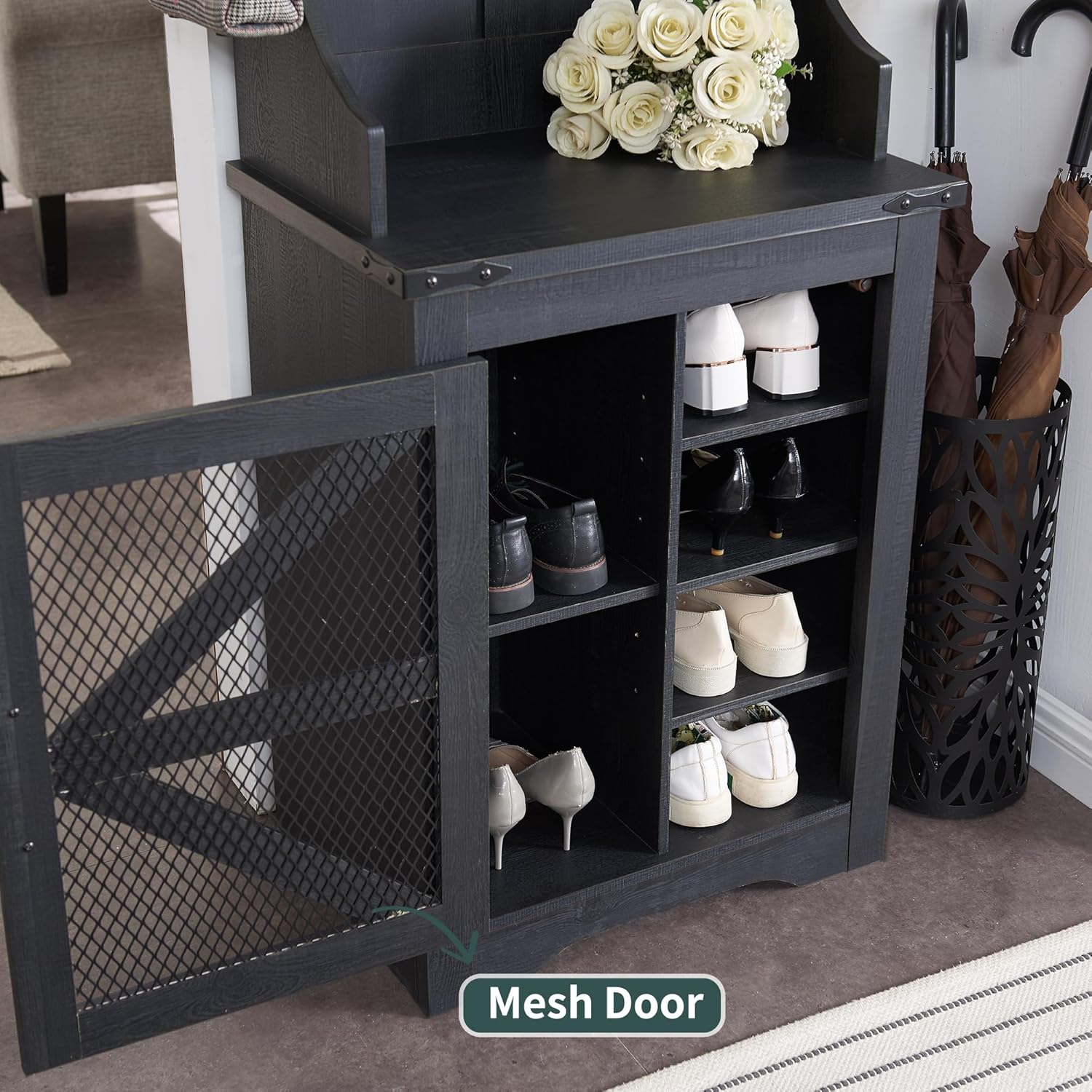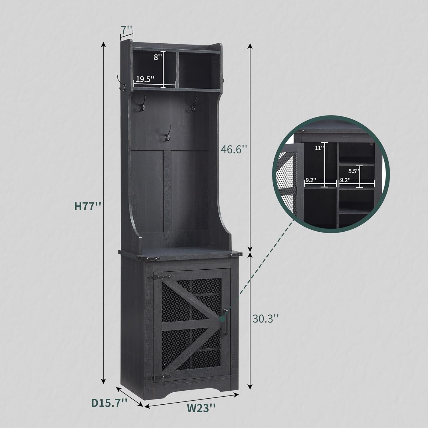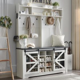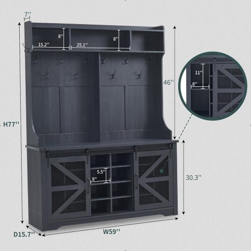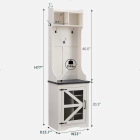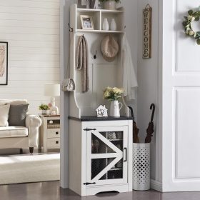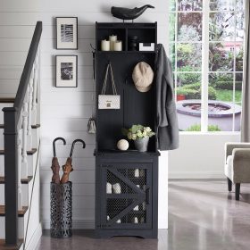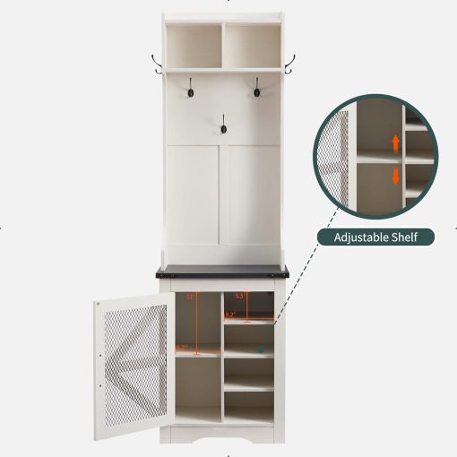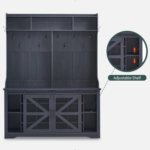 - Versatile 3-in-1 Hall Tree: This farmhouse entryway storage solution combines a coat rack, shoe storage cabinet, and storage cubby, offering a complete organization system for your entryway or hallway. With this all-in-one furniture piece, you can meet a variety of storage needs in one compact design.