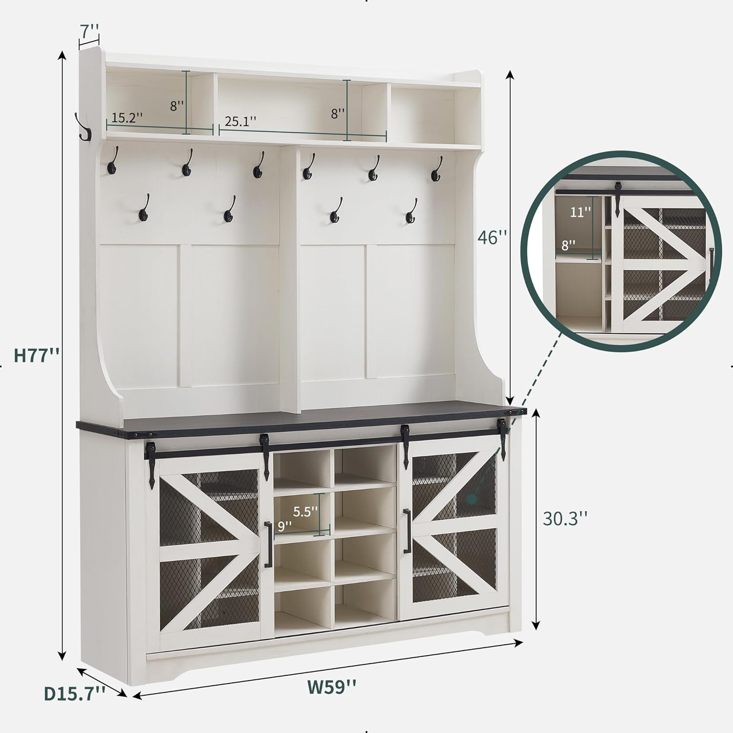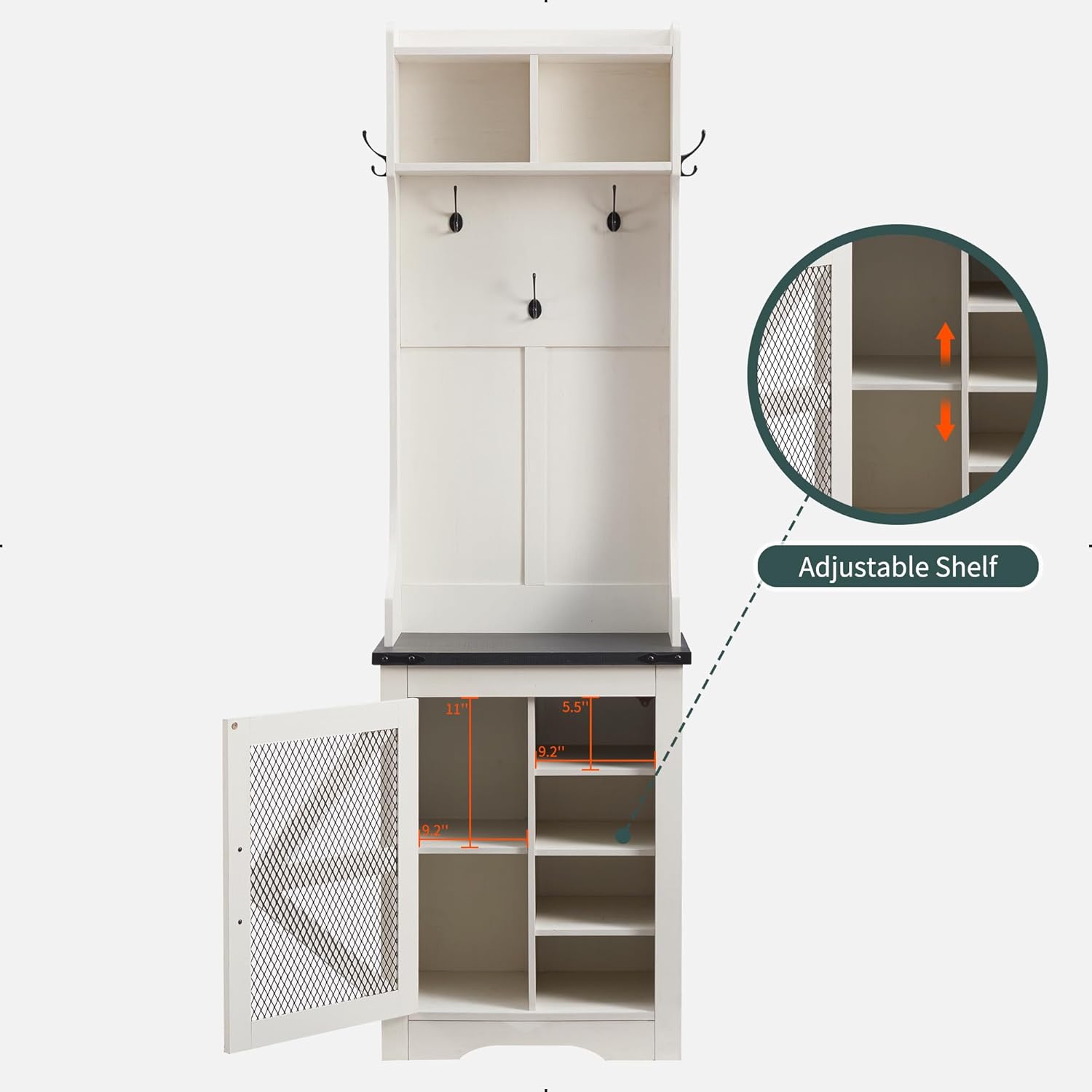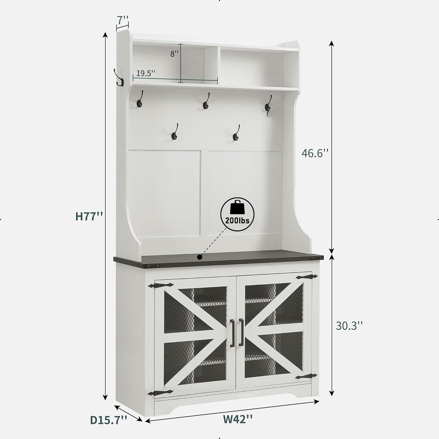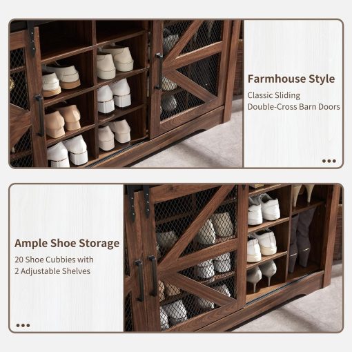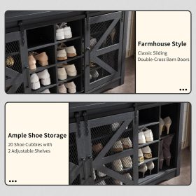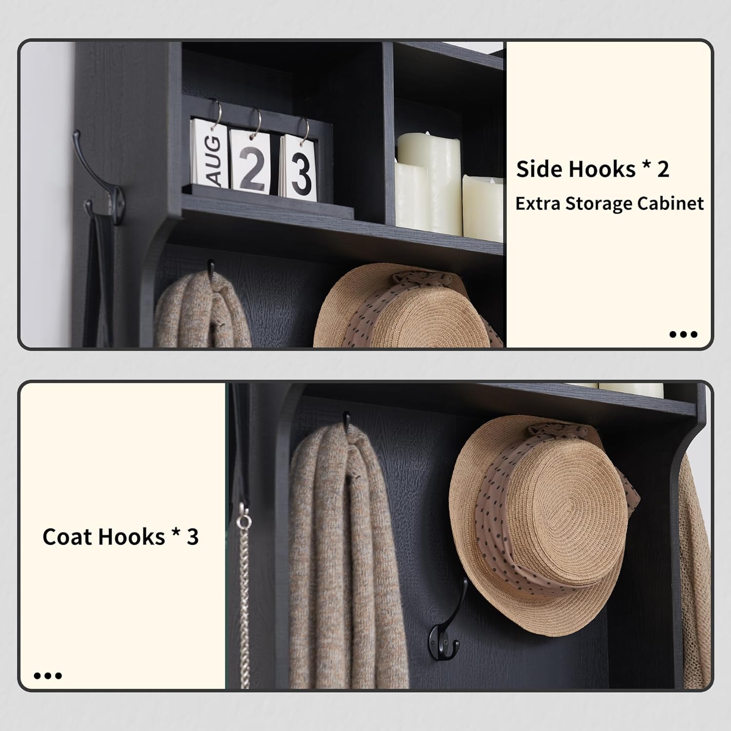 - Ample Storage Capacity: Featuring 20 shoe cubbies, 12 double coat hooks, and 3 overhead compartments, plus a spacious bench top for sitting or displaying decor. Keep your coats, hats, shoes, and other essentials neatly stored and easily accessible, while maintaining a clutter-free entryway.