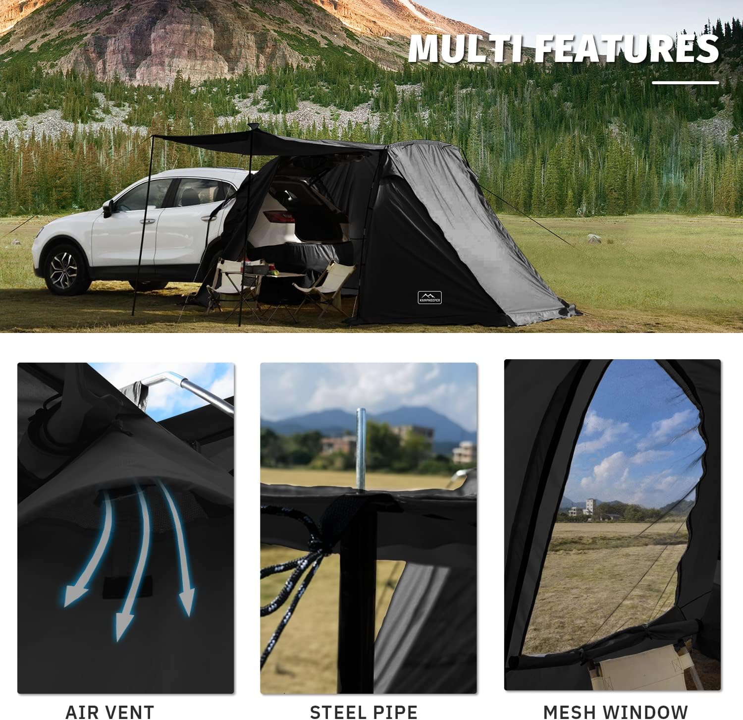 KAMPKEEPER SUV Car Tent, Tailgate Shade Awning Tent for Camping, Vehicle Camping Tents Outdoor Travel (Black)