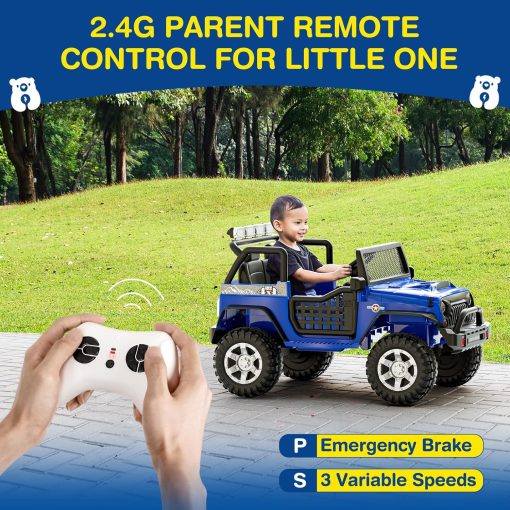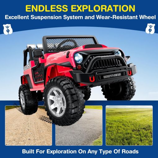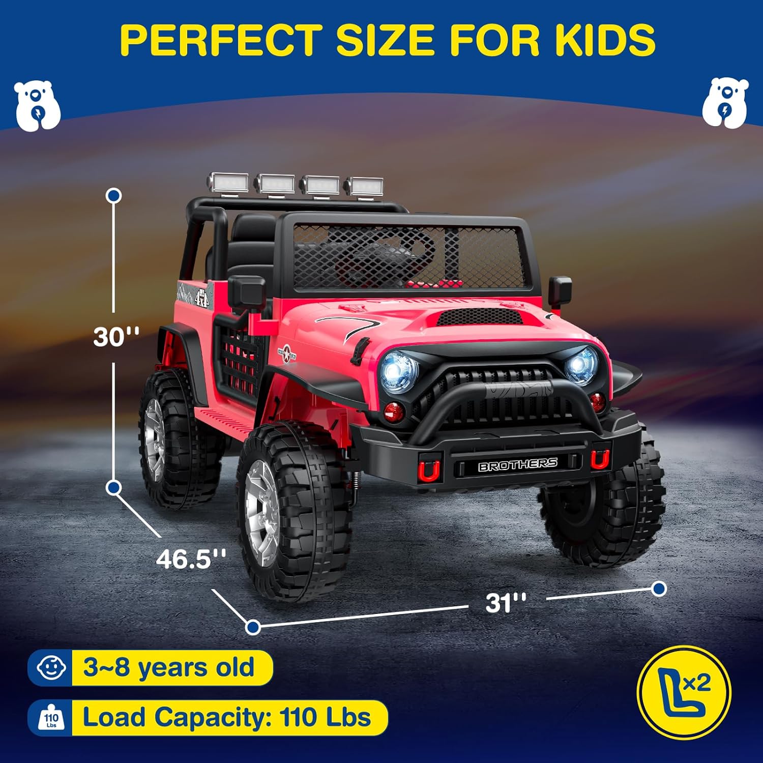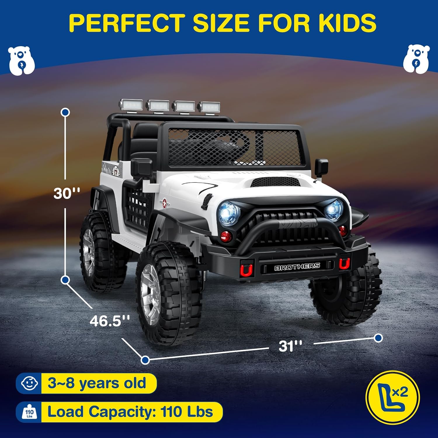 - UNLEASH THE THRILL!: Powered by a 12V 7Ah battery, it offers up to 40 minutes of ride time. With 4 spring suspensions and rugged tires, it conquers any terrain. 3-speed modes, maxing at 4.97mph, provide an exhilarating experience for kids. Get ready for endless fun!