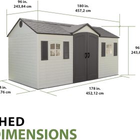 - Exterior Dimensions: 15 ft. W x 8 ft. D x 7 ft. 10.8 in. H