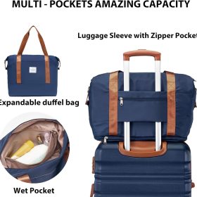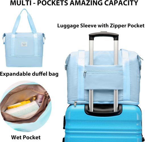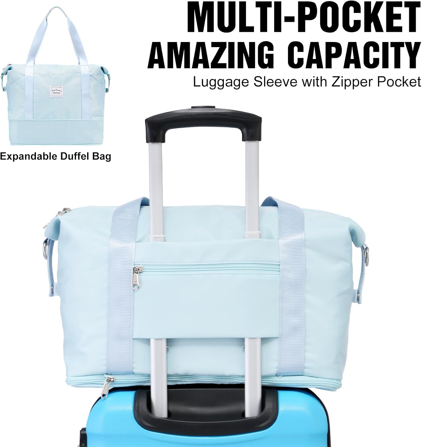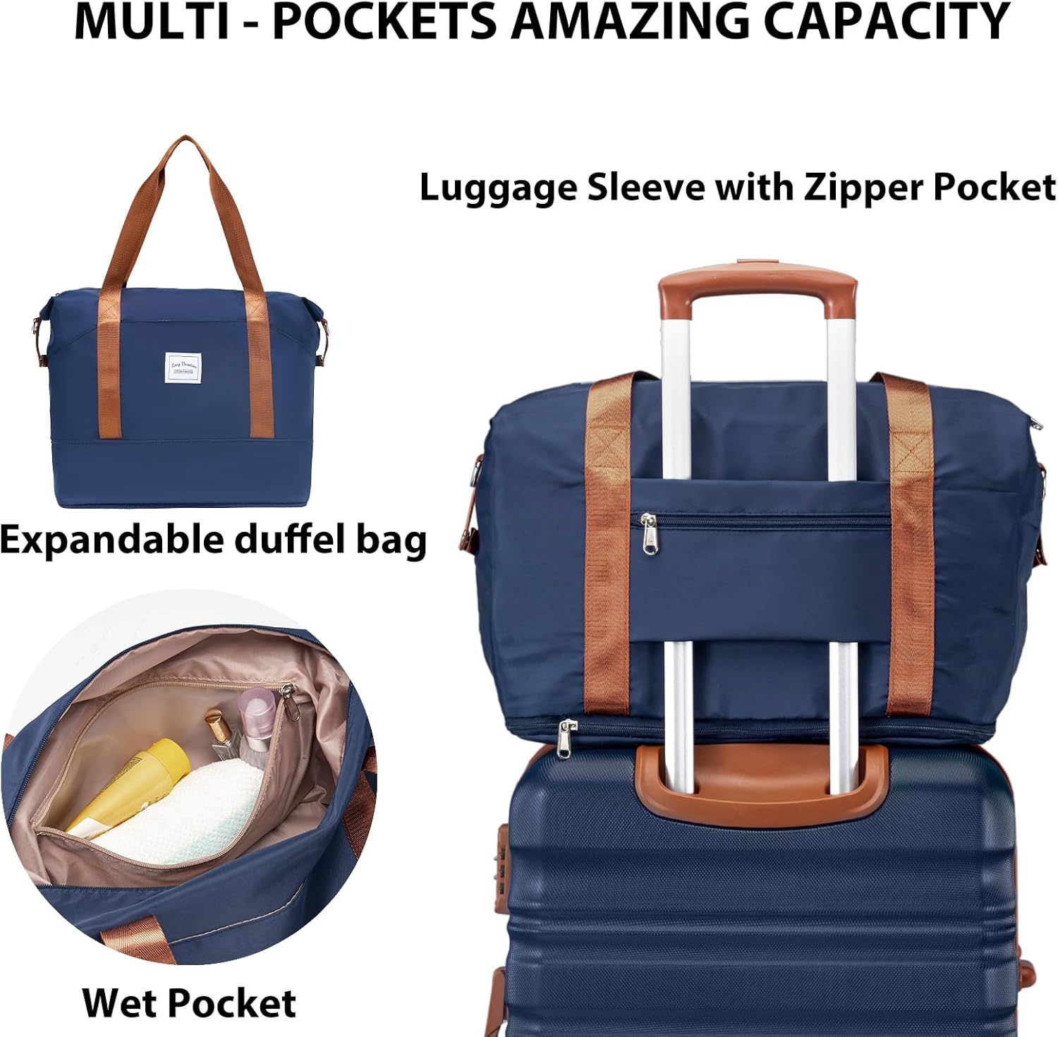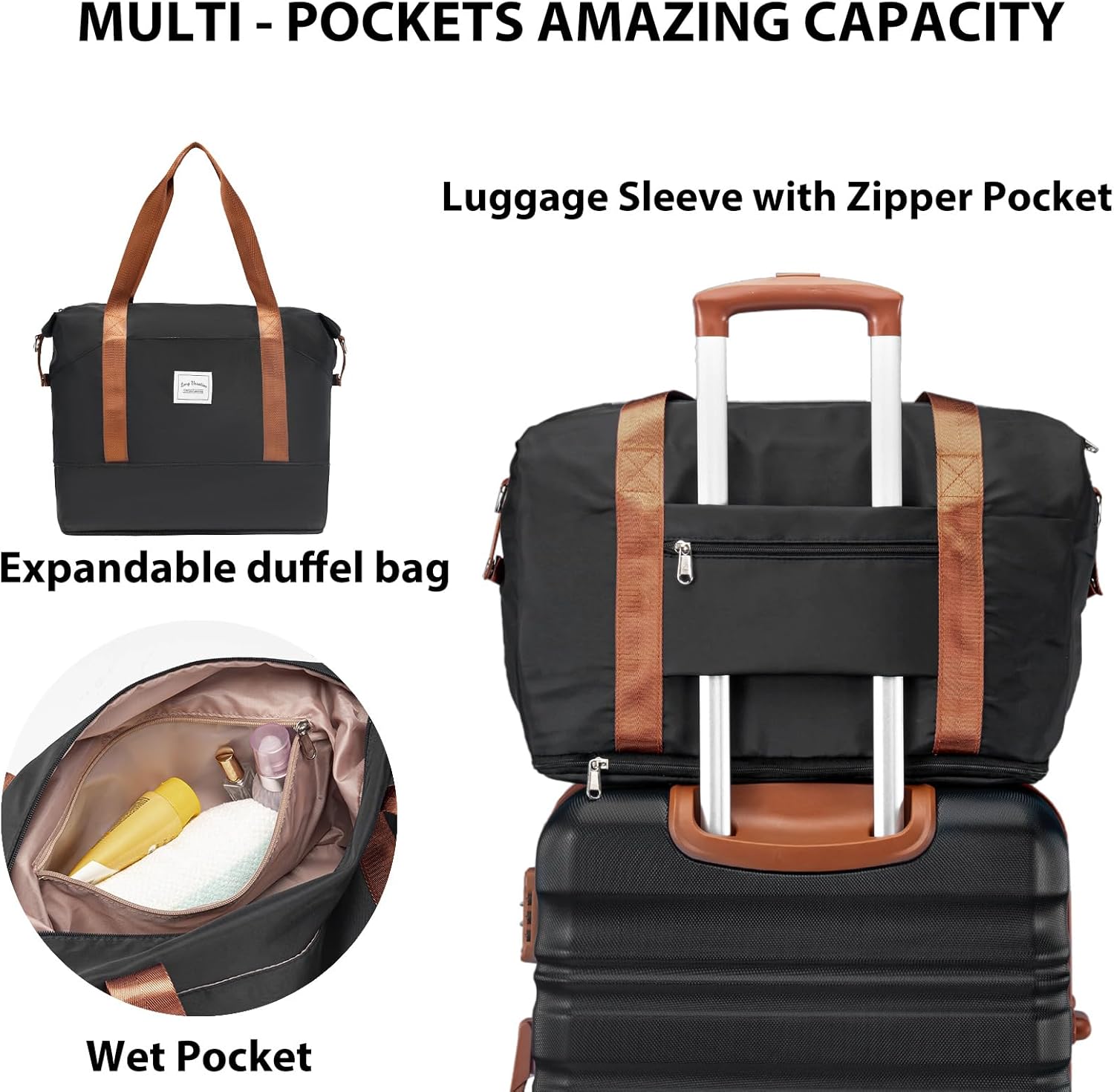 - Practical Bag Attached: The duffel bag and travel backpack are both designed with the trolley sleeve, so you can keep your property safe by attaching them to the retractable luggage handle. The extra space in the duffel bag allows you to pack more luggage for your convenience. The laptop compartment of the travel backpack protects your computer from damage.