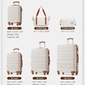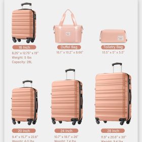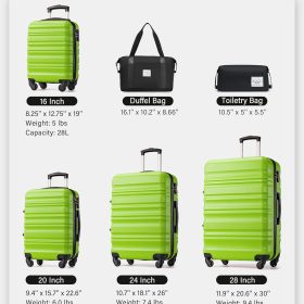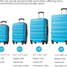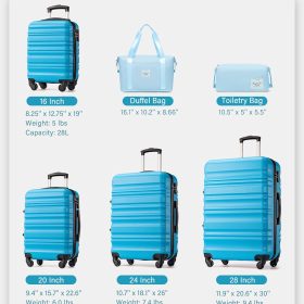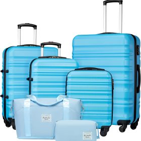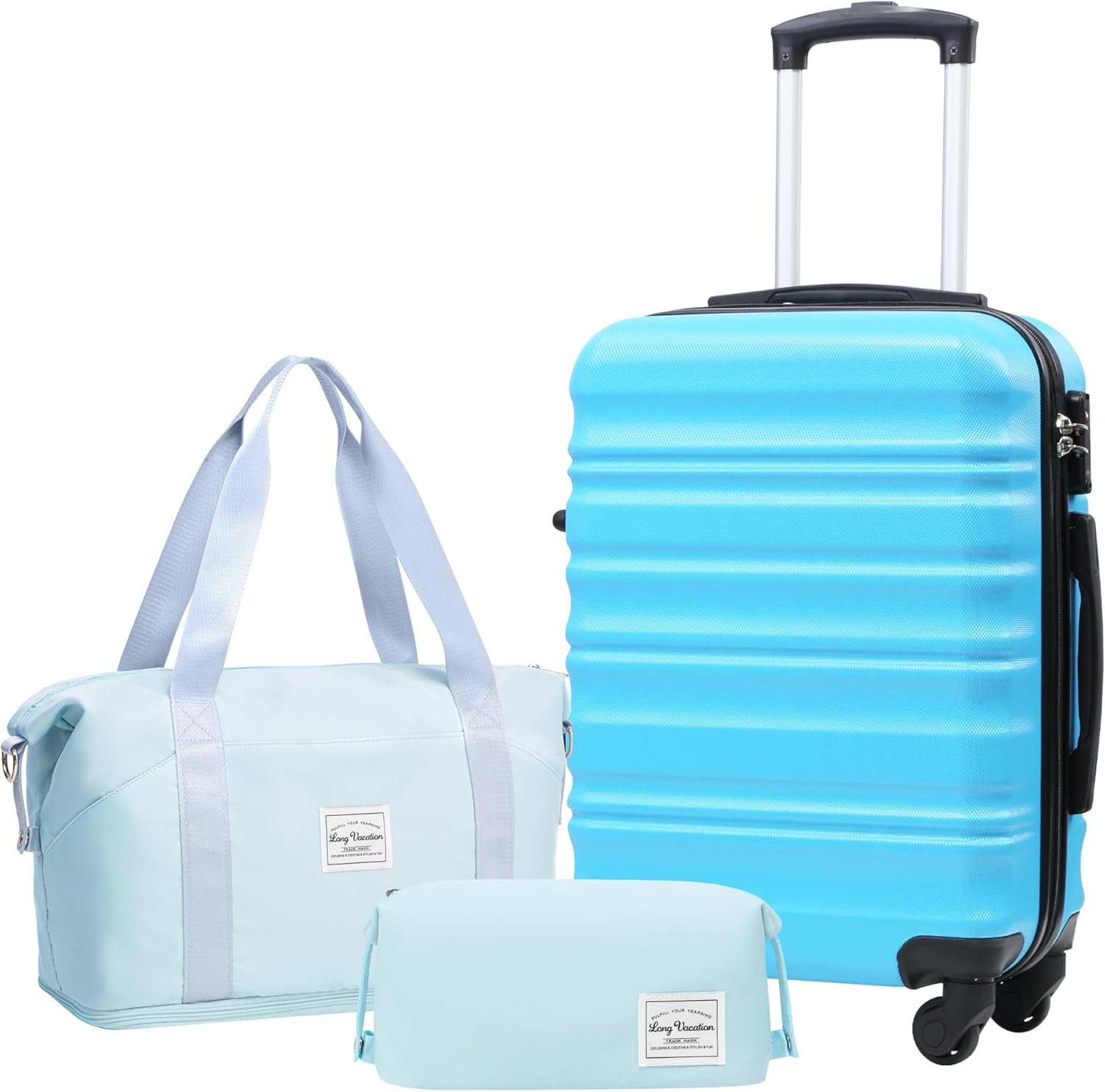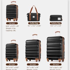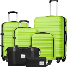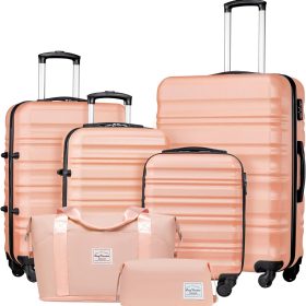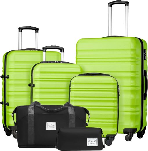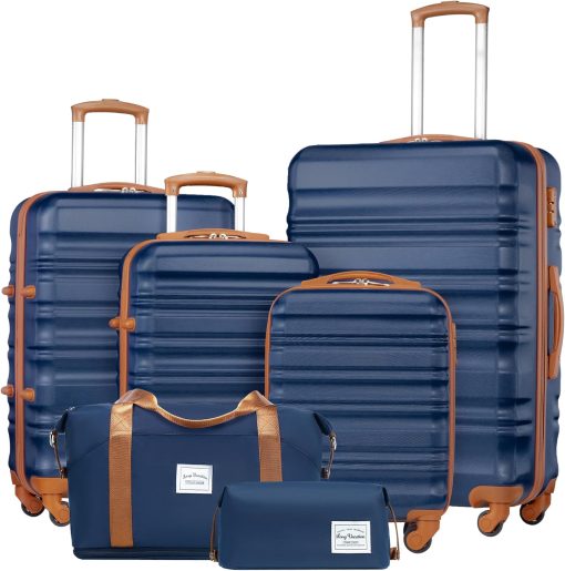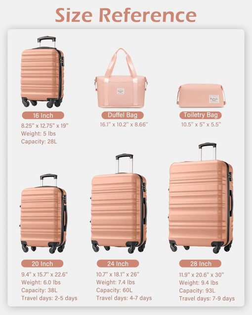 - Choices for various occasions: You can enjoy the size combination of 6pcs for family vacation (large luggage 28′: 11.9*20.6*30’/medium suitcase 24′: 10.7*18.1*26’/carry on luggage 20′: 9.4*15.7*22.6’/carry on luggage 16′: 8.25*12.75*19’/Duffel Bag: 16.1*10.2*8.66′ /Toiletry Bag: 10.5*5*5.5′) paired with retro or vibrant color appearances to meet personalized needs and switch travel styles at will