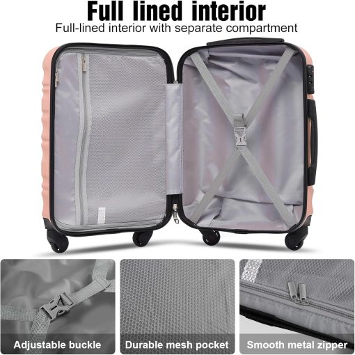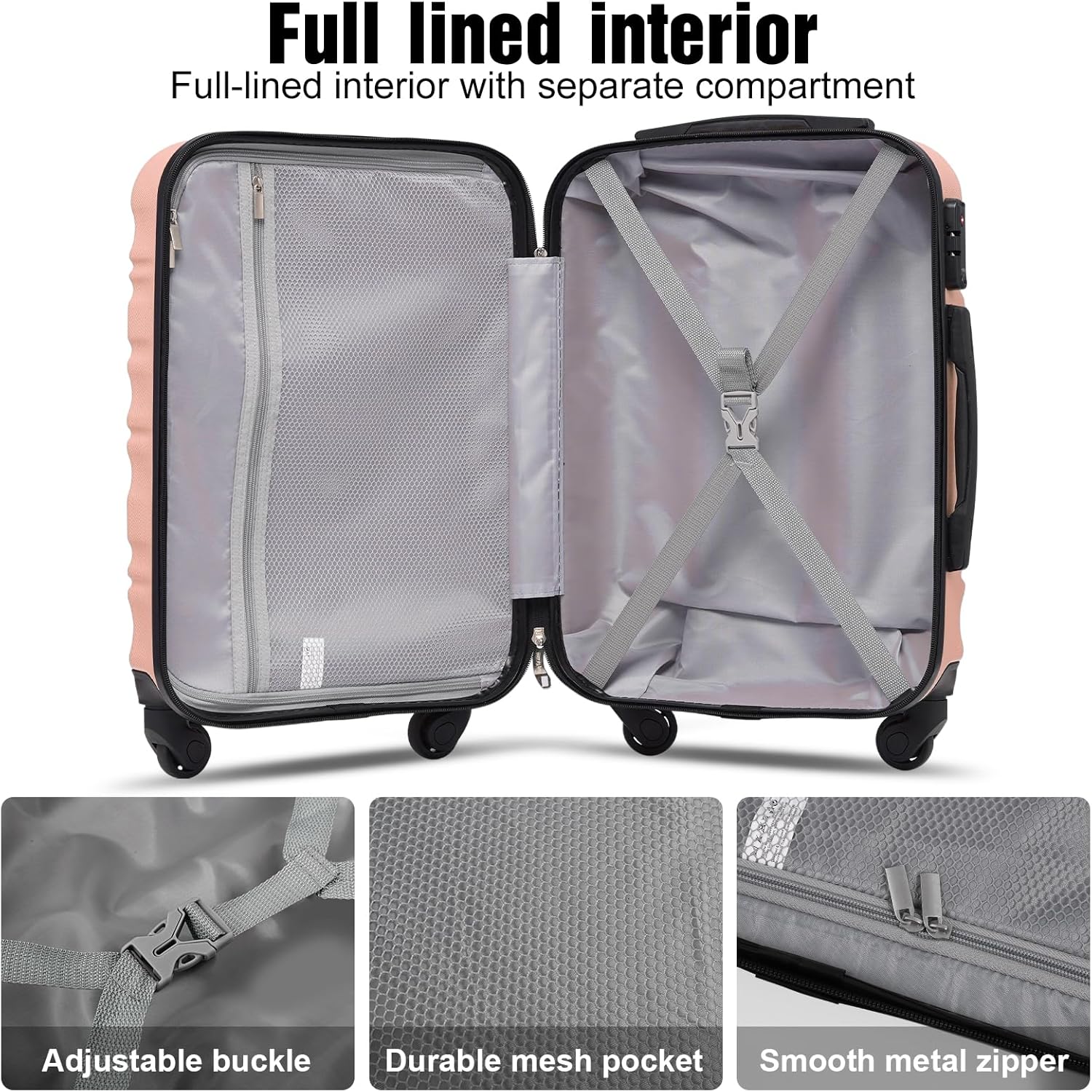 - 360° Spinner Wheels, Conquer Any Terrain: 4 silent wheels, which passed strict violent-drop test and 15kg load for 20km rolling speed test, glides effortlessly on cobblestones, carpets, and slopes without wobbling or jamming. Even in crowded airports or busy streets, the luggage can be flexibly passed