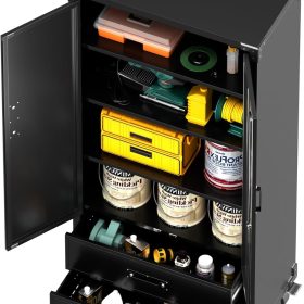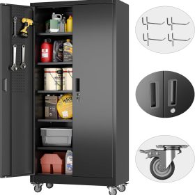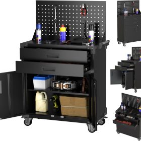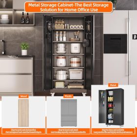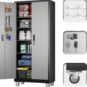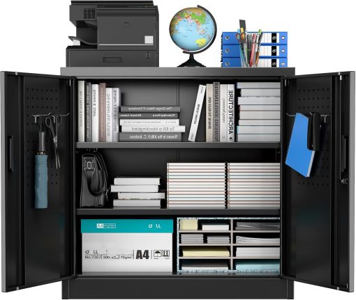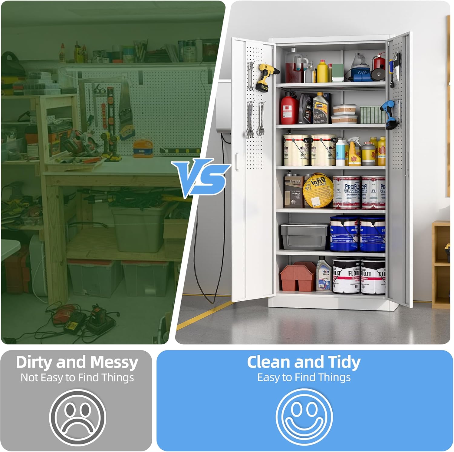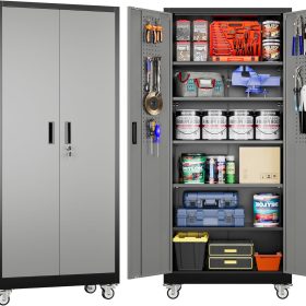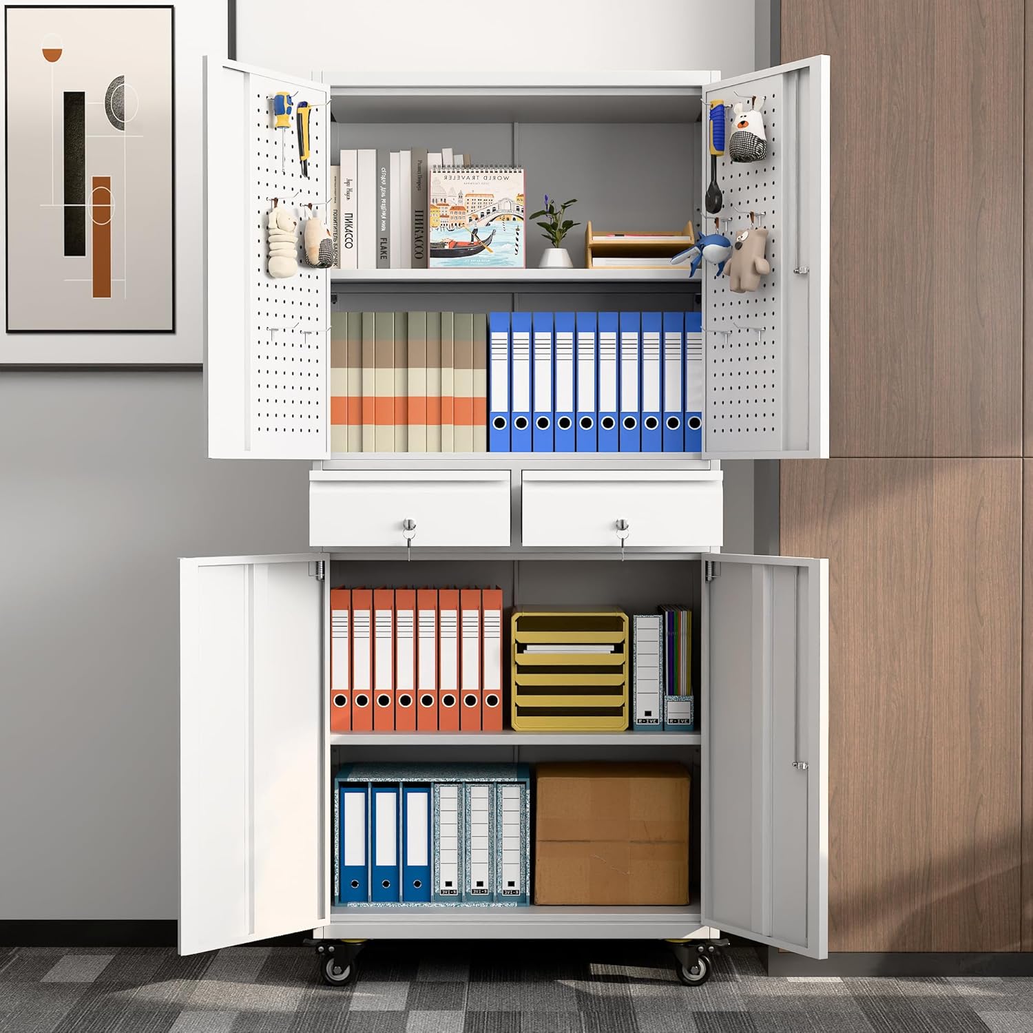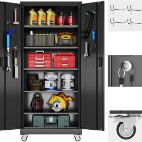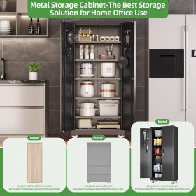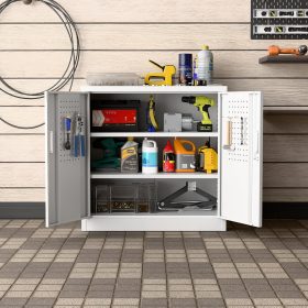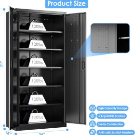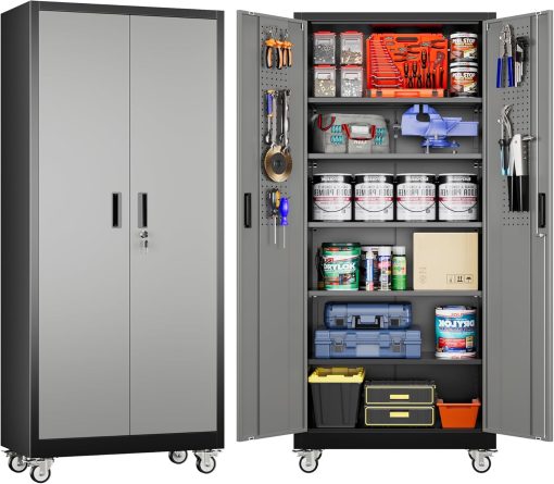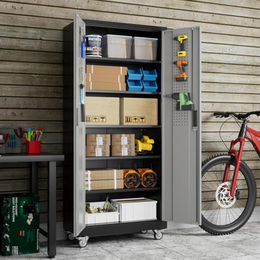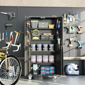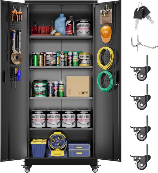 - New Upgrade:Metal Cabinet has lots of room to organize your belongings.In order to meet customer storage requirements, the newly upgraded metal cabinet with Pegboard(Including 4 hooks�?for storing tools and other items, fully utilizing space