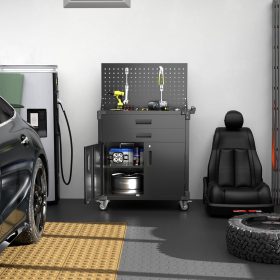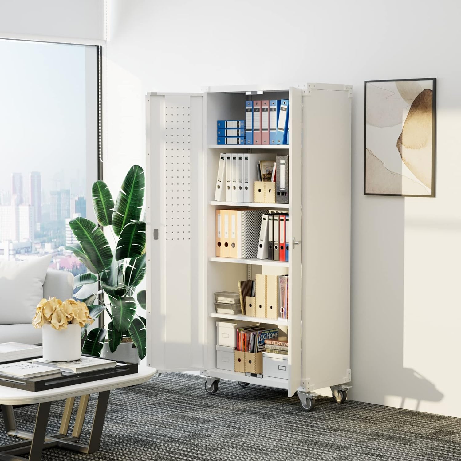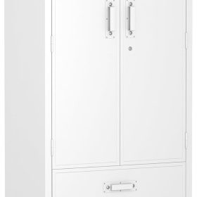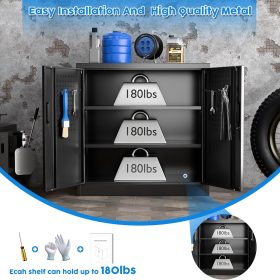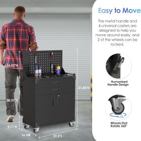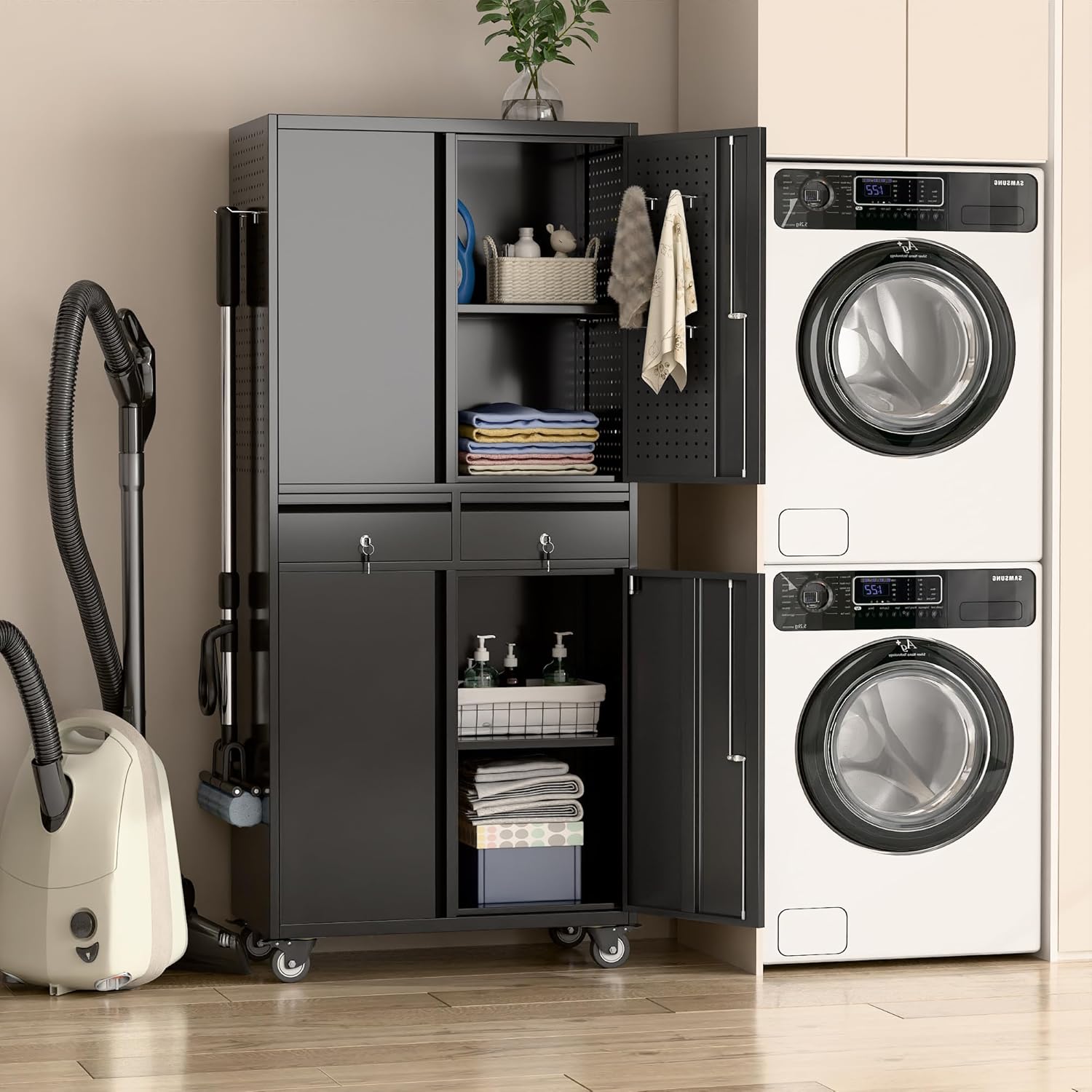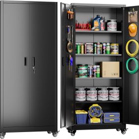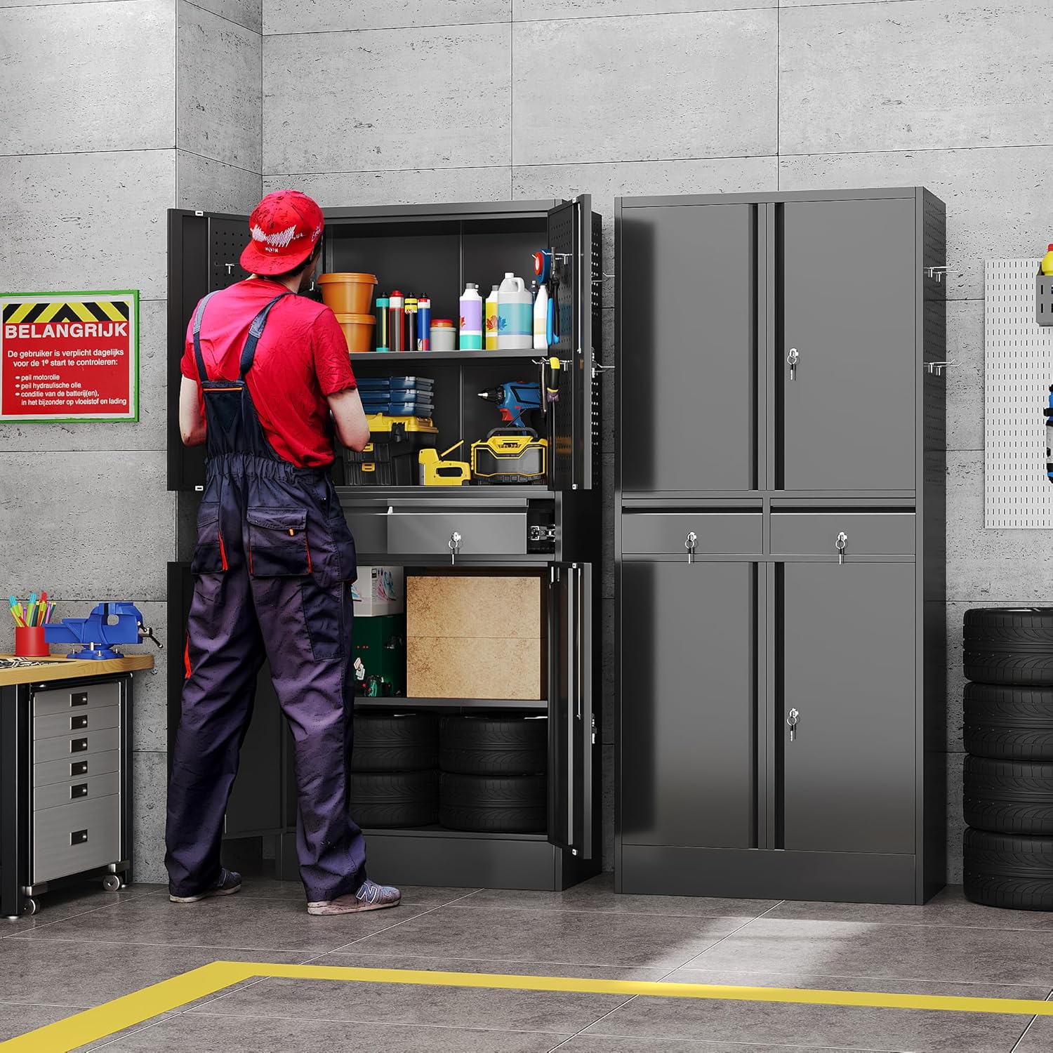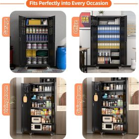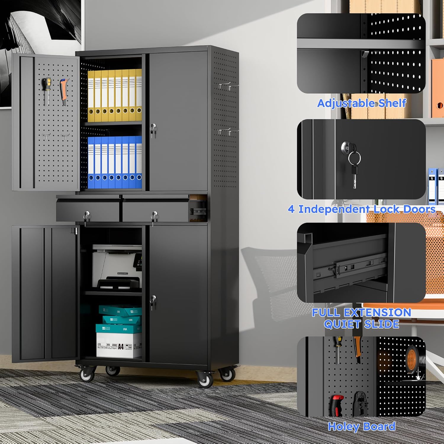 - New Upgrade:Metal Cabinet has lots of room to organize your belongings.In order to meet customer storage requirements, the newly upgraded metal cabinet with Pegboard(Including 4 hooks�?for storing tools and other items, fully utilizing space