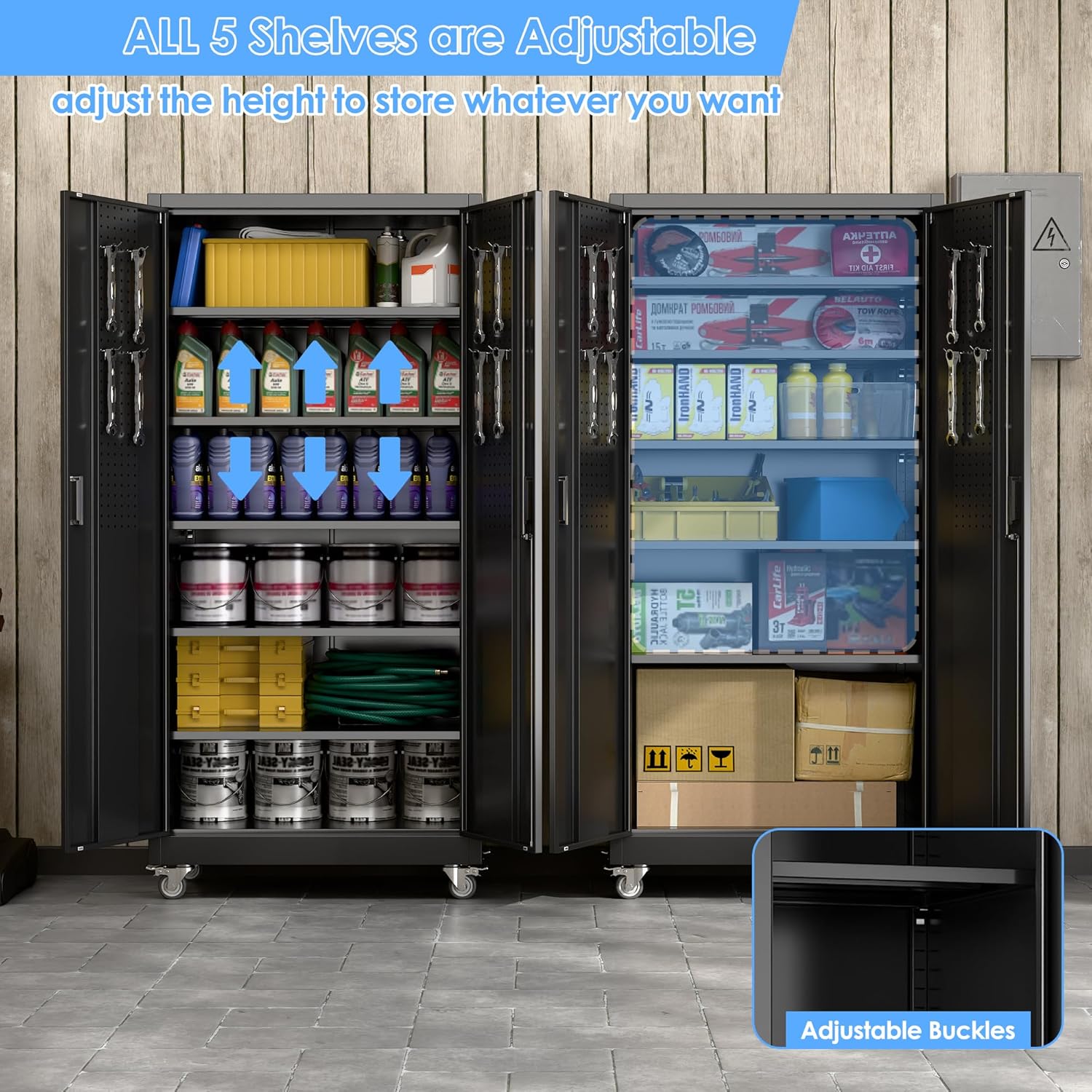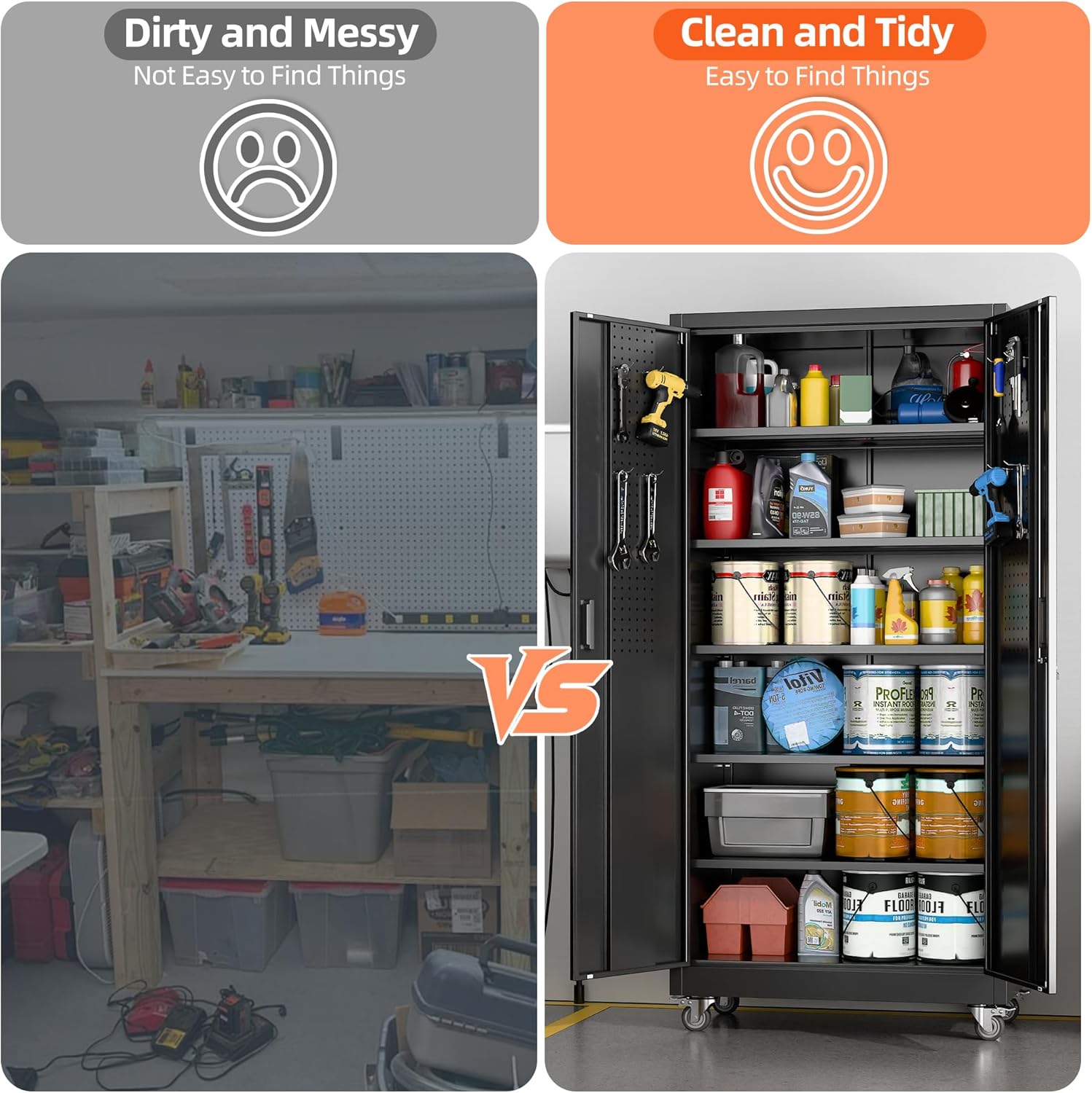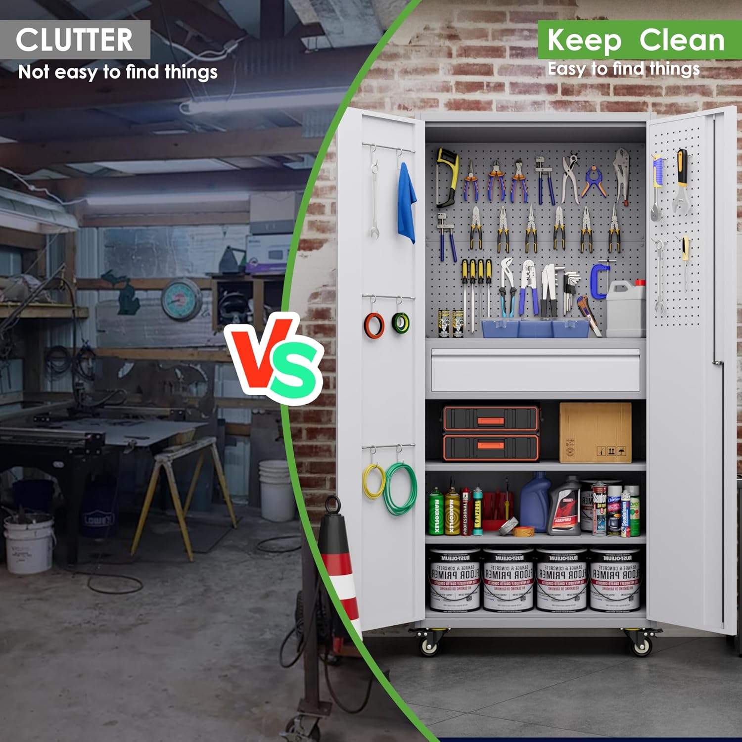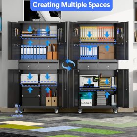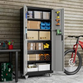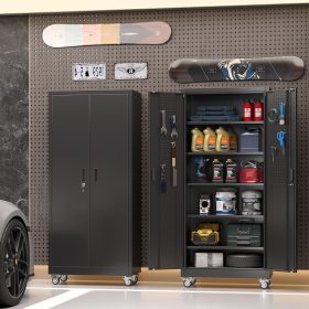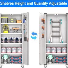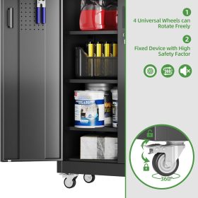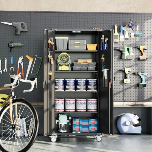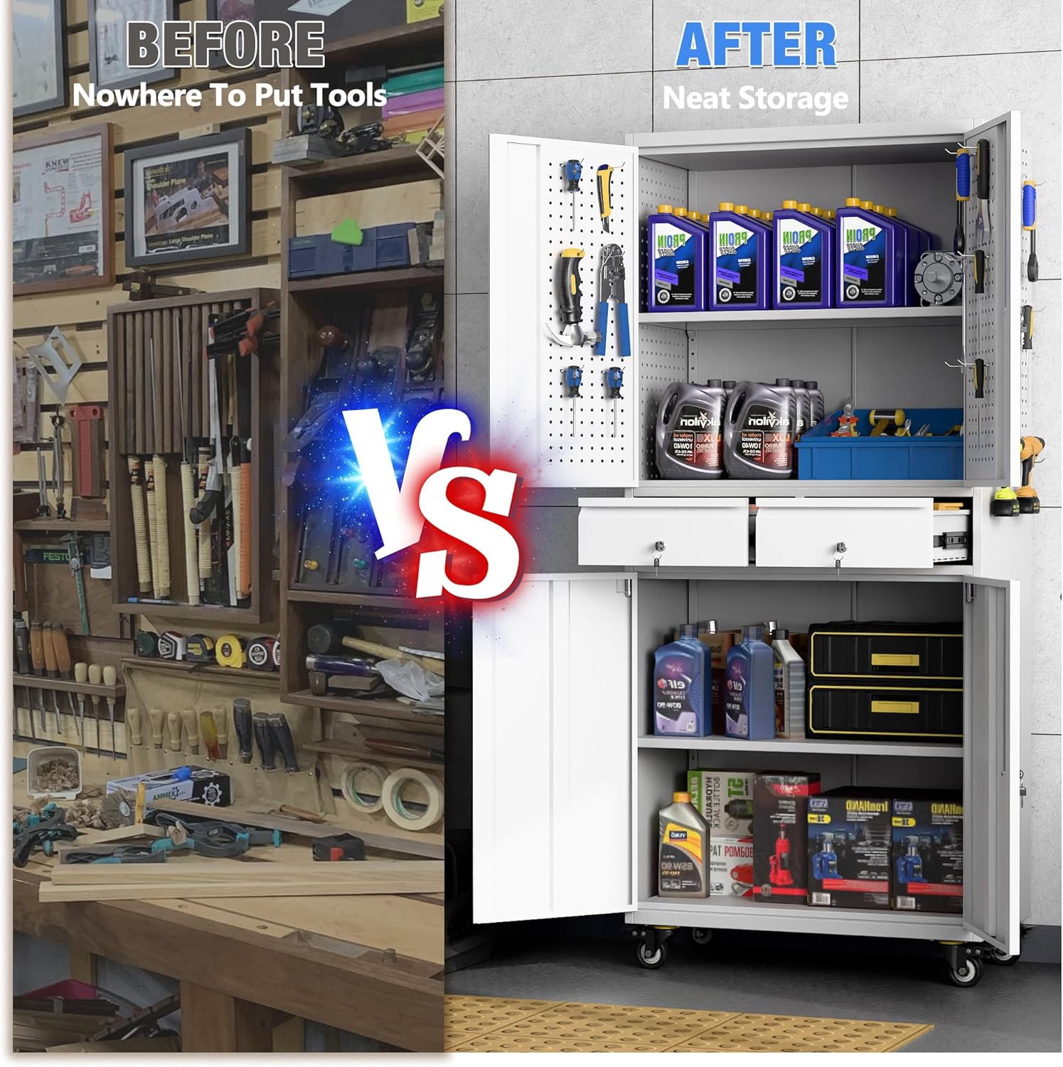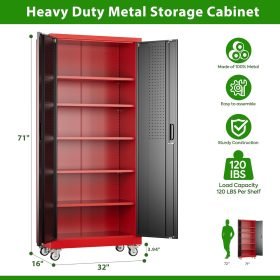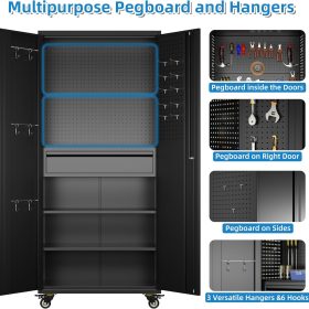 - Larger and Deeper Sizes:Metal Garage Storage Cabinet with Wheels and Pegboard 71” x 34” x 18”,The widened and deepened design allows you to obtain larger storage space.