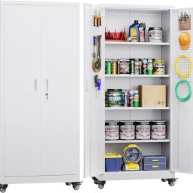 - One more adjustable partition: We carefully followed the customer’s suggestion and included five adjustable partitions with the metal cabinet,that provide lots of room to organize your household goods, supplies, tools, etc. A built-in lock with 2 keys to keep all your documents and belongings safe.