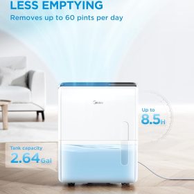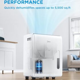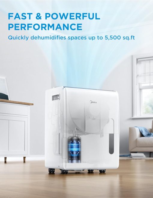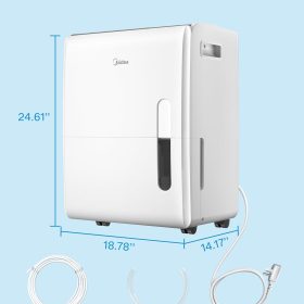 Midea 4,500 Sq. Ft. Dehumidifier With Pump Included, Energy Star Certified, 50 Pint – Ideal For Basements, Large & Medium Sized Rooms, And Bathrooms (White)