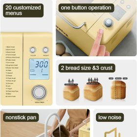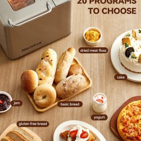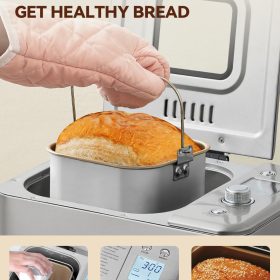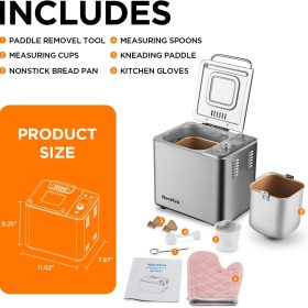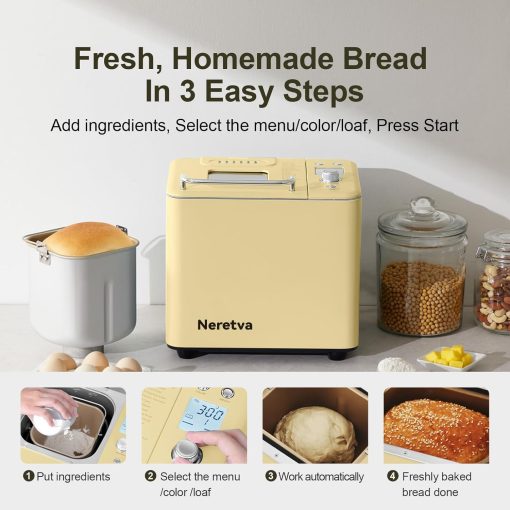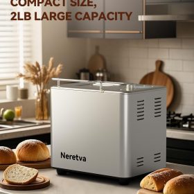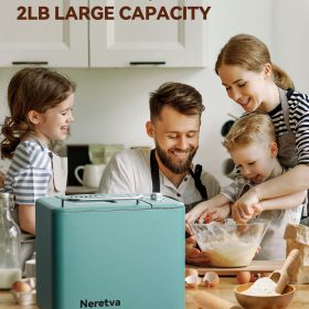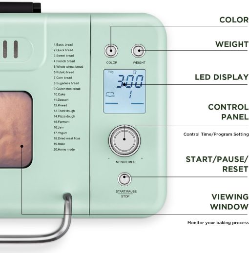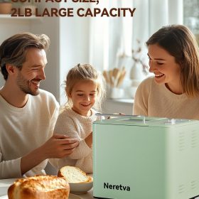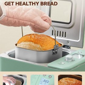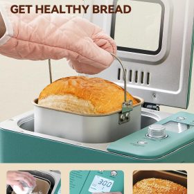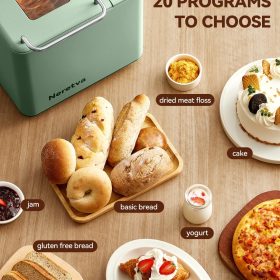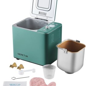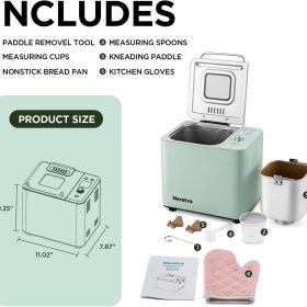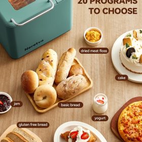 Neretva Bread Maker, 20-IN-1 2LB Bread Machine Dual Heater Bread Maker Machine Automatic with Nonstick Ceramic Pan, 15H Timer & 1H Keep Warm Set, Low Noise, Stainless Steel Breadmaker Recipe-Green