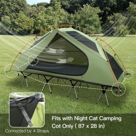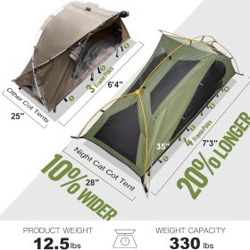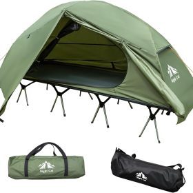 - 【Camping Cot Tent Combo】The package contains 2 items, the black carry bag contains the COT and the green carry bag contains the TENT. Pairing a elevated tent with a camping cot gives you more camping options! The waterproof fabric under the tent ensures a dry and comfortable place. Ripstop nylon fabric for greater durability.