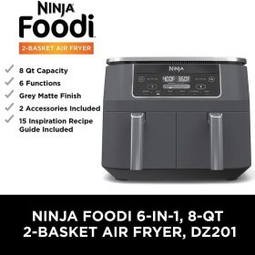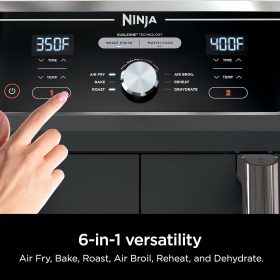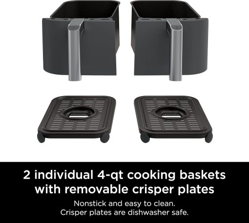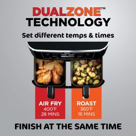 Ninja Foodi 10QT 6-in-1 DualZone Smart XL Air Fryer, 2 Independent 5QT Baskets, Smart Cook Thermometer, Match Cook, Smart Finish, Air Fry, Roast, Bake, Dehydrate, Reheat, Grey, DZ550