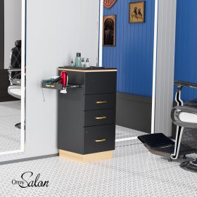 Additional side panels feature 3 tool racks for hair dryers and curling irons. Very convenient for you to place items while working.