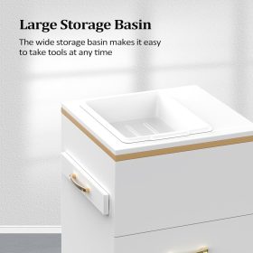 The salon styling station comes with a storage basin & 3 drawers and 3 hair dryer holders, provides you with a more storage space. The simple and elegant modern design complement classic and modern interiors.It can be used in hair salons, barber shops, tattoo studios, beauty SPA studios, also can be placed in the bathroom, living room and bedroom at home. High-quality material which is heat and scratch resistant and waterproof for long time use and easy clean.